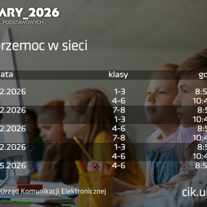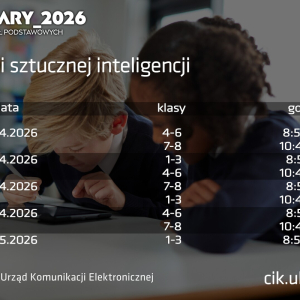 - Dane i wizerunek w sieci - powiemy m.in.: jak dbać o prywatność w sieci, dlaczego należy dbać o dane osobowe i wizerunek, dlaczego publikowane zdjęcia i komentarze tworzą trwały cyfrowy ślad, jak unikać nadmiernego udostępniania danych oraz w jaki sposób reagować, gdy ktoś naruszy nasz wizerunek lub dane online;