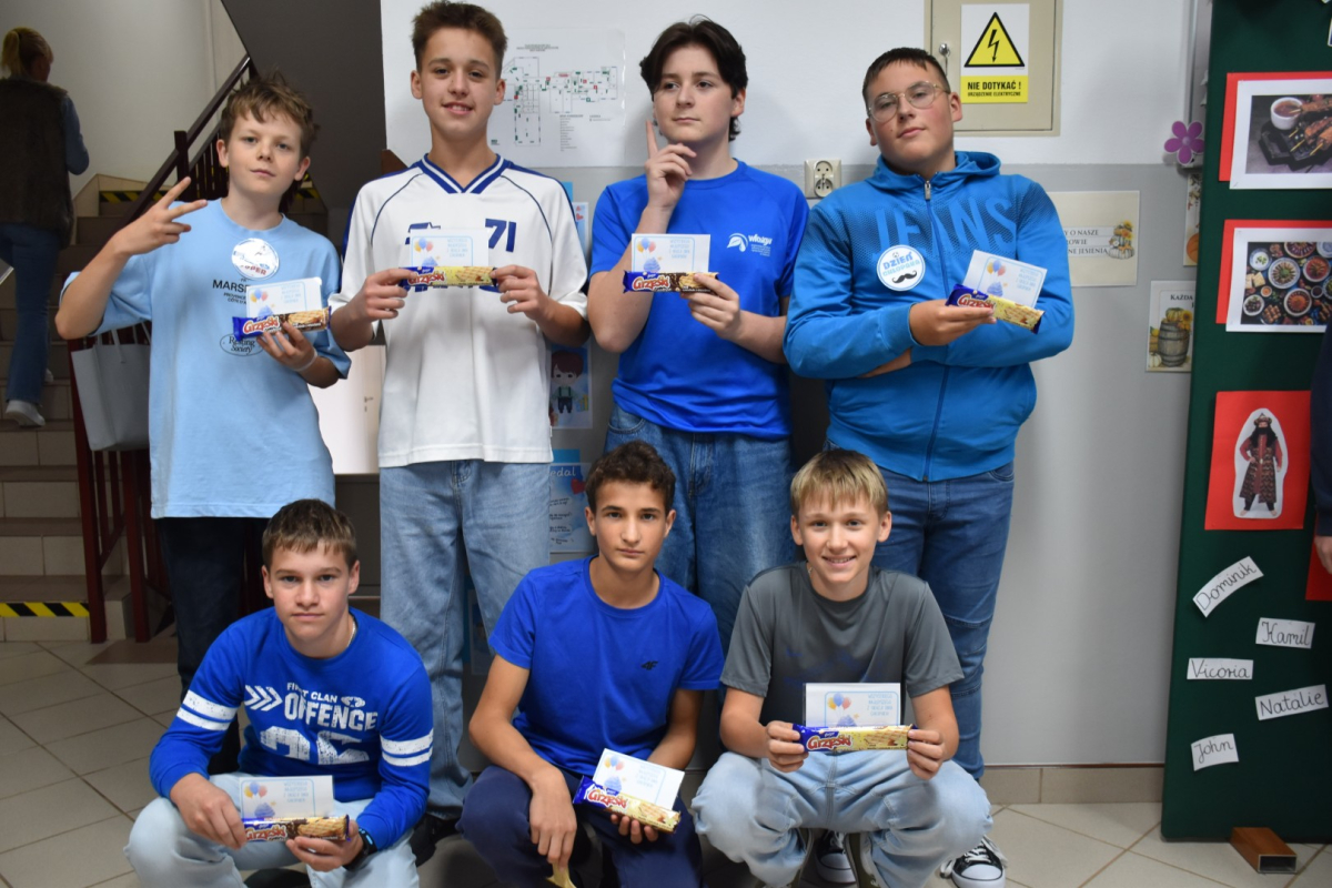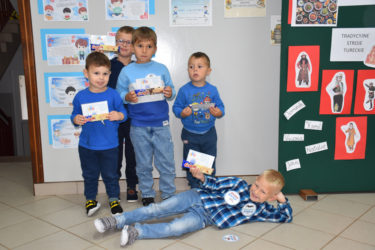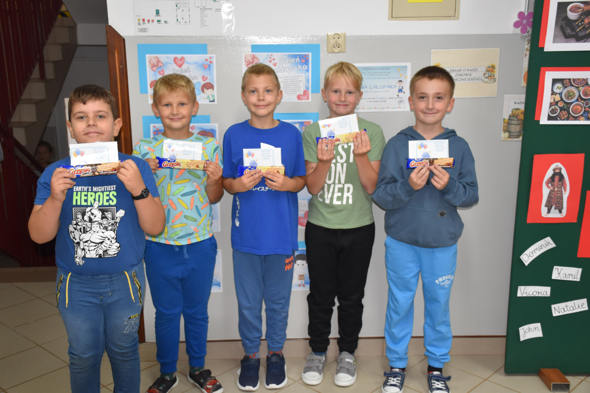W dniu 30 września Samorząd Uczniowski zorganizował w naszej szkole Dzień Chłopaka. Z tej okazji wszyscy chłopcy otrzymali słodkie upominki. Dodatkowo, chłopcy ubrani tego dnia na niebiesko zostali zwolnieni z odpowiedzi ustnej. Jeszcze raz składamy najserdeczniejsze życzenia dla wszystkich chłopców dziękując jednocześnie za przygotowane niebieskie stroje!