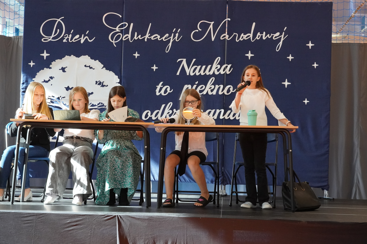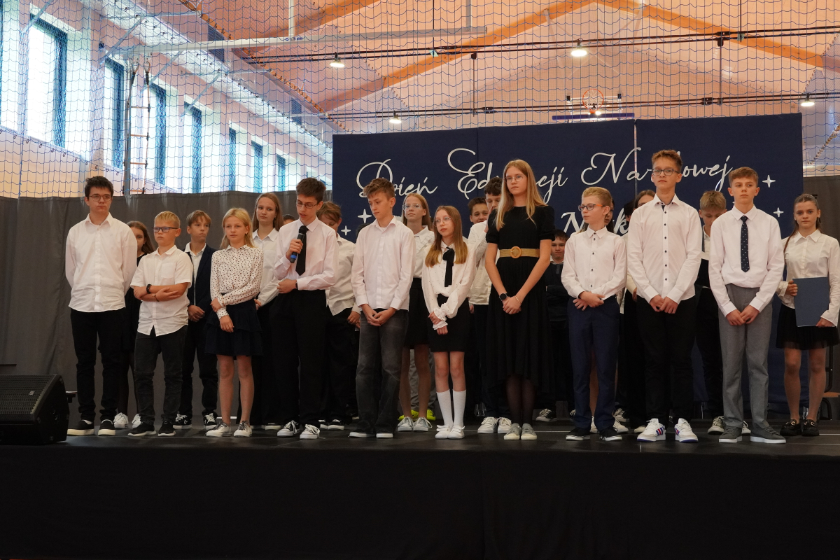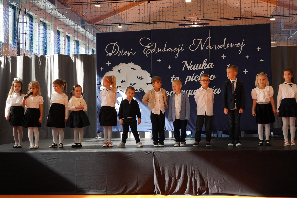 Uroczystość rozpoczęła się od przypomnienia historii utworzenia Dnia Edukacji Narodowej – święta ustanowionego w 1972 roku na pamiątkę powołania Komisji Edukacji Narodowej w 1773 roku. Prowadzący podkreślili, jak ważną rolę w życiu każdego człowieka odgrywają nauczyciele, przekazując nie tylko wiedzę, ale również kształtując postawy i wartości. Następnie na scenie pojawiły się przedszkolaki, które przygotowały krótki, uroczy występ dedykowany swojej pani.