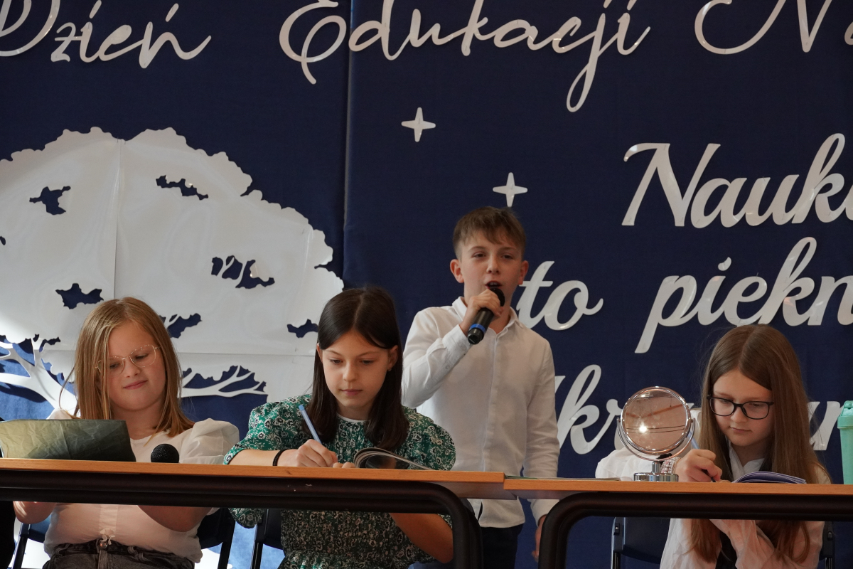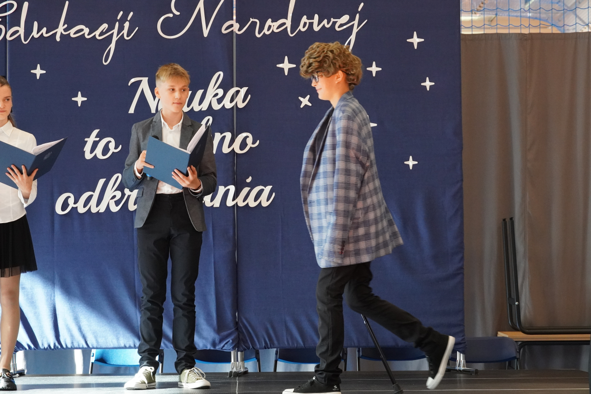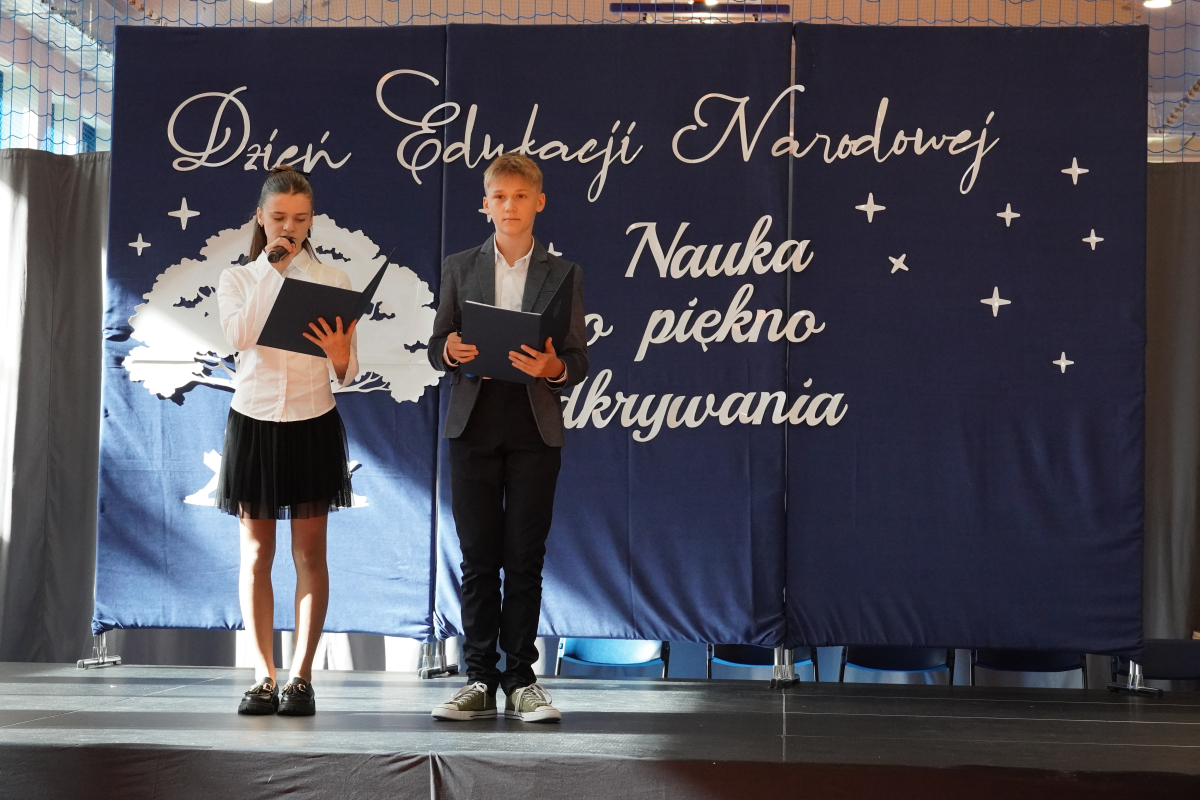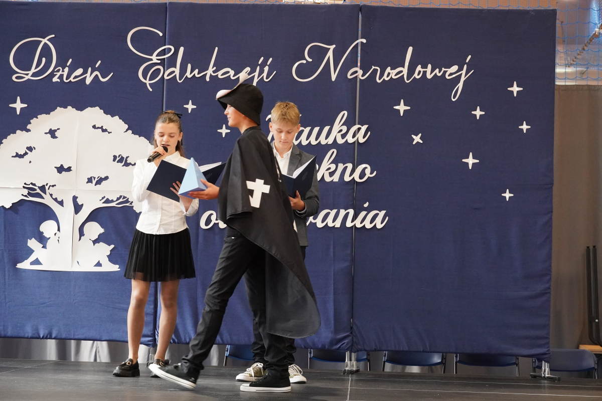 Uroczystość rozpoczęła się od przypomnienia historii utworzenia Dnia Edukacji Narodowej – święta ustanowionego w 1972 roku na pamiątkę powołania Komisji Edukacji Narodowej w 1773 roku. Prowadzący podkreślili, jak ważną rolę w życiu każdego człowieka odgrywają nauczyciele, przekazując nie tylko wiedzę, ale również kształtując postawy i wartości. Następnie na scenie pojawiły się przedszkolaki, które przygotowały krótki, uroczy występ dedykowany swojej pani.
