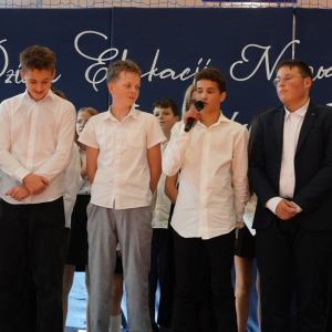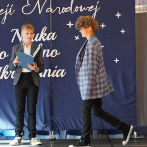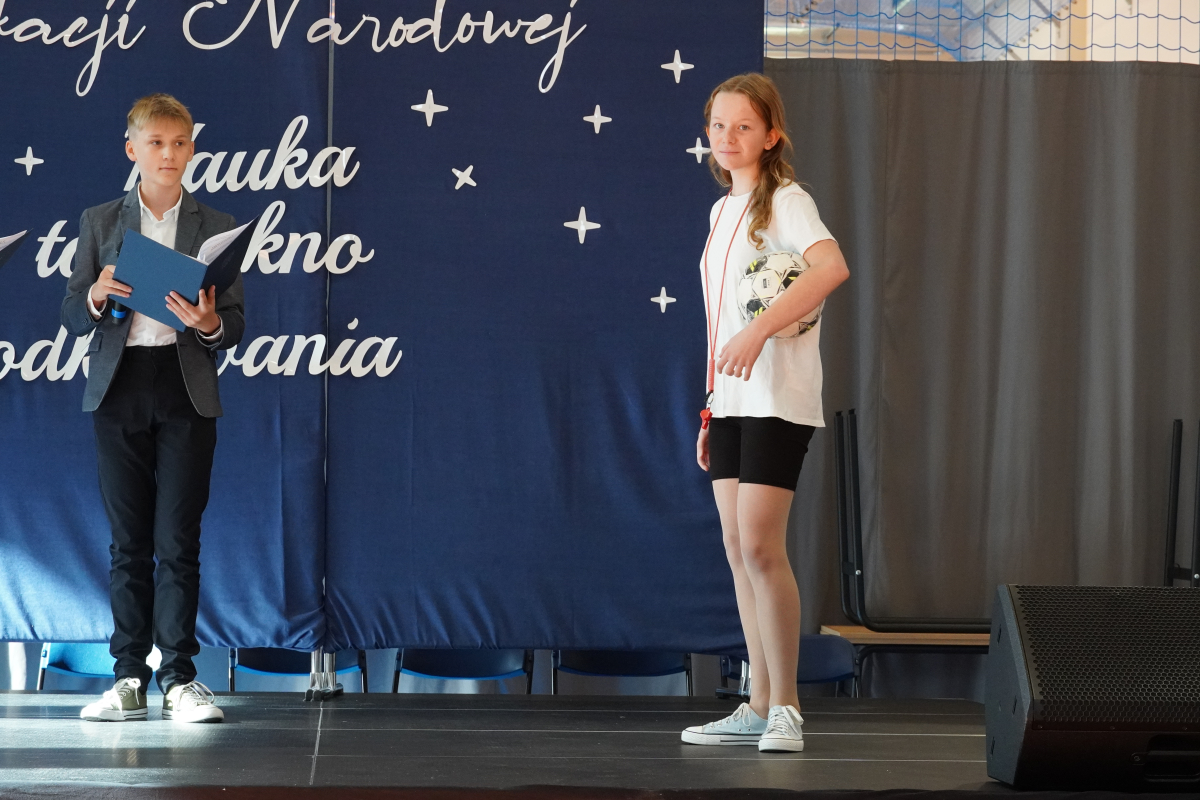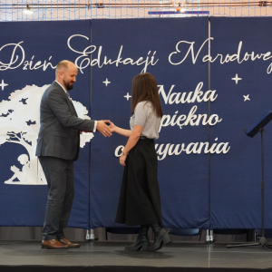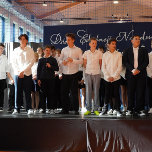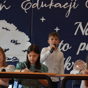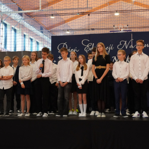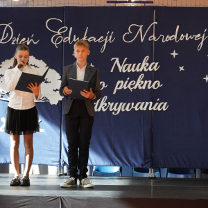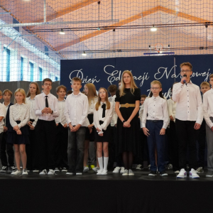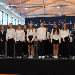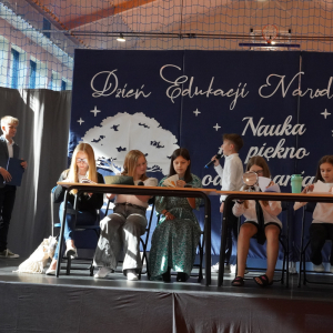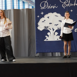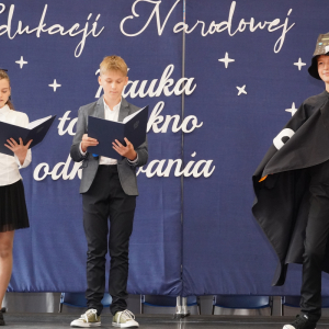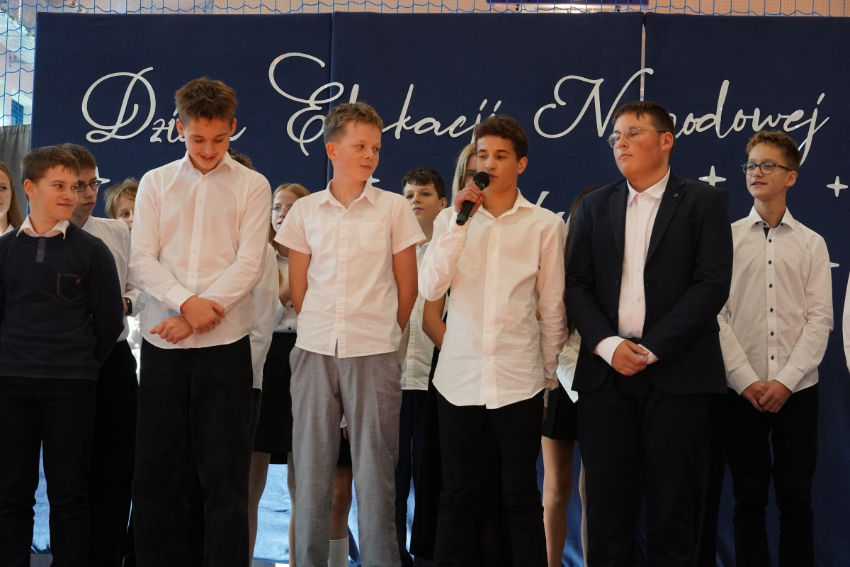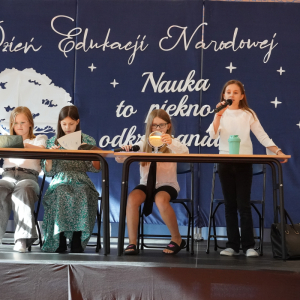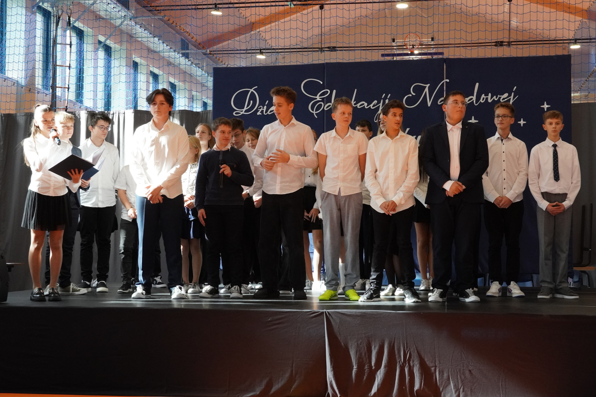 Nie zabrakło również części muzycznej – uczniowie zaśpiewali piosenki do melodii znanych utworów, takich jak „Felicita” i „Jak się masz?”, ale z własnym, autorskim tekstem, dotyczącym szkolnej rzeczywistości i nauczycieli. Występy te spotkały się z dużym aplauzem publiczności. Na zakończenie przedstawiono humorystyczne wiersze o wszystkich nauczycielach i pracownikach szkoły, w których z przymrużeniem oka, ale z dużą sympatią, opisano ich charakterystyczne cechy i codzienną pracę. Akademia zakończyła się wspólnym odśpiewaniem piosenki oraz życzeniami skierowanymi do wszystkich pracowników oświaty. Uroczystość przebiegła w miłej, radosnej atmosferze i na długo pozostanie w naszej pamięci.