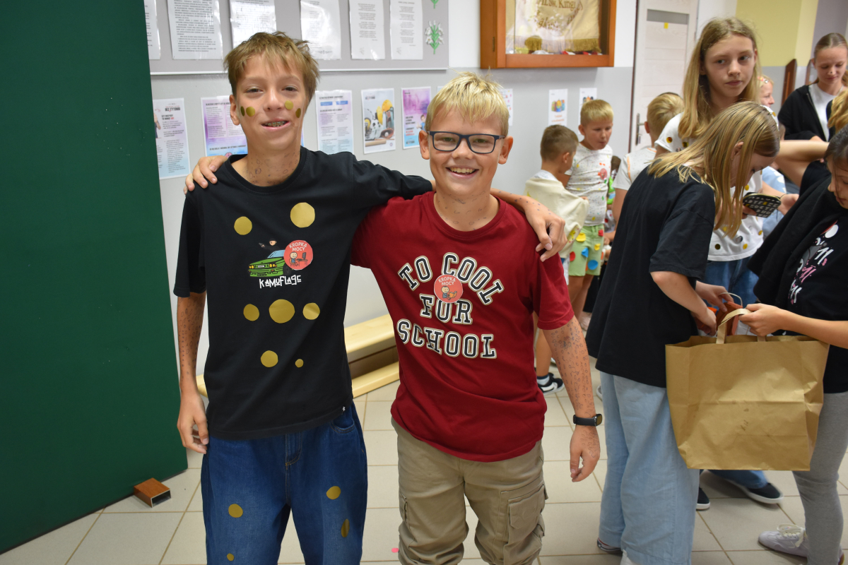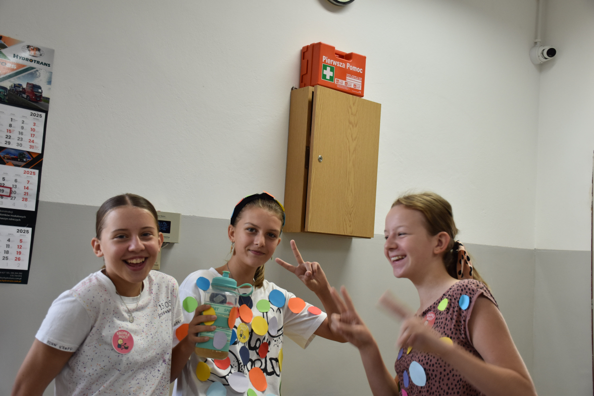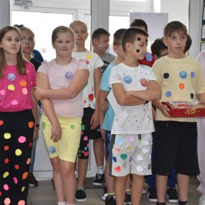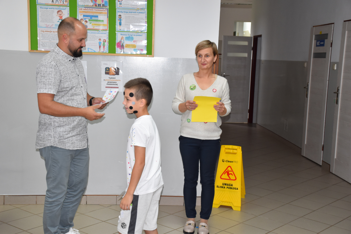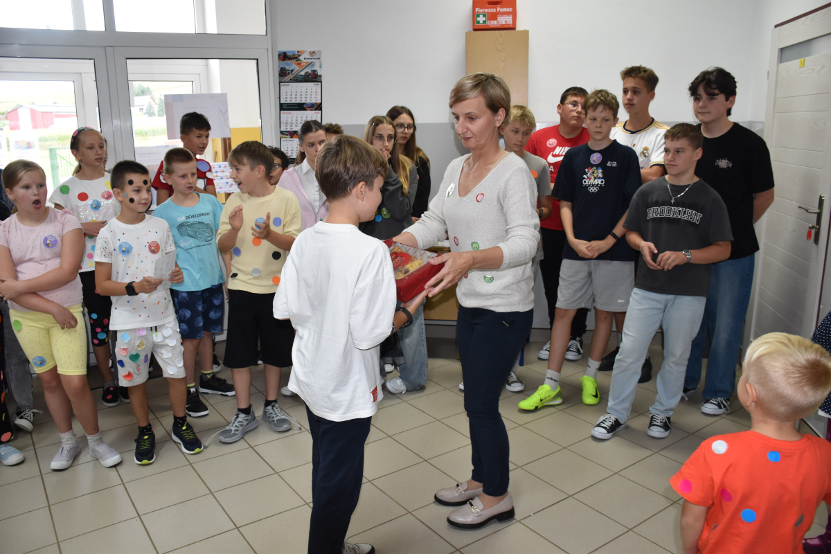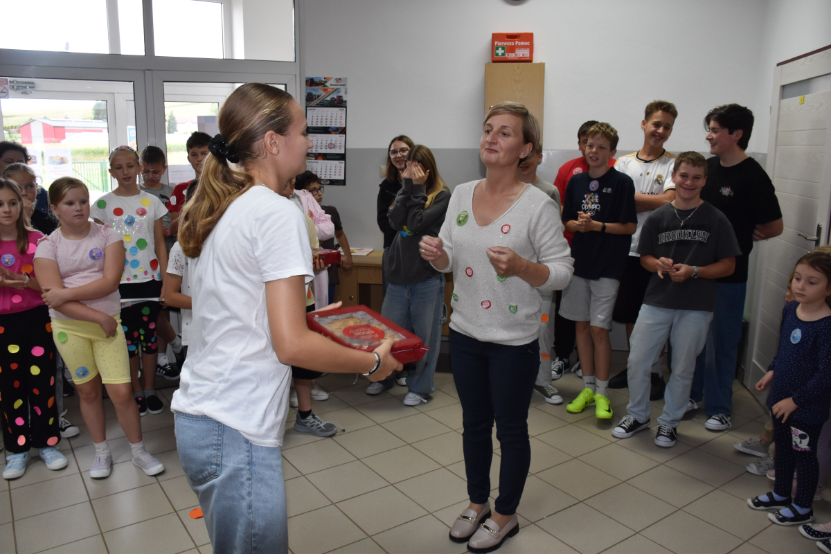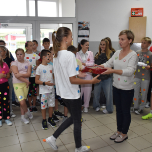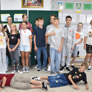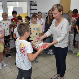 W piątek 19 września w naszej szkole Samorząd Uczniowski zorganizował obchody Międzynarodowego Dnia Kropki – Dzień Kropki Mocy. Celem tego wydarzenia było odkrywanie własnych talentów i zachęcanie do zaprezentowanie ich przed grupą. Inspiracją do stworzenia tego wydarzenia stała się Vashti, czyli bohaterka książki "The Dot"(autor: Peter H. Reyolds). Vashti nie wierzyła w swoje zdolności plastyczne. Jej nauczycielka plastyki wychwyciła talent dziewczynki malowanie pięknych kropek. Główna bohaterka - odpowiednio zmotywowana zaczęła malować nowe obrazki, a nawet tworzyć wystawy w galeriach sztuki! Vashti odkrywając swój talent, zaczęła dostrzegać, że stała się inspiracją dla wielu ludzi, którzy chętnie odwiedzili jej wystawę. Główna bohaterka zrozumiała, że wyjątkowe talenty drzemią w każdym człowieku i zaczęła zauważać je także u innych. W tym dniu uczniowie naszej szkoły zaprezentowali makijaże, stroje z elementami kropek. Z wielkim zaangażowaniem włączyli się do akcji. Najbardziej udekorowani uczniowie otrzymali bon zwalniający z odpowiedzi ustnej, ważny do końca września, natomiast klasy najbardziej wykropkowane otrzymały smakołyki. W tym dniu uczniowie mogli również zakupić przygotowane słodkości. Bardzo wszystkim dziękujemy za tak wielkie zaangażowanie i zachęcamy do udziału w kolejnych akcjach Samorządu Uczniowskiego!