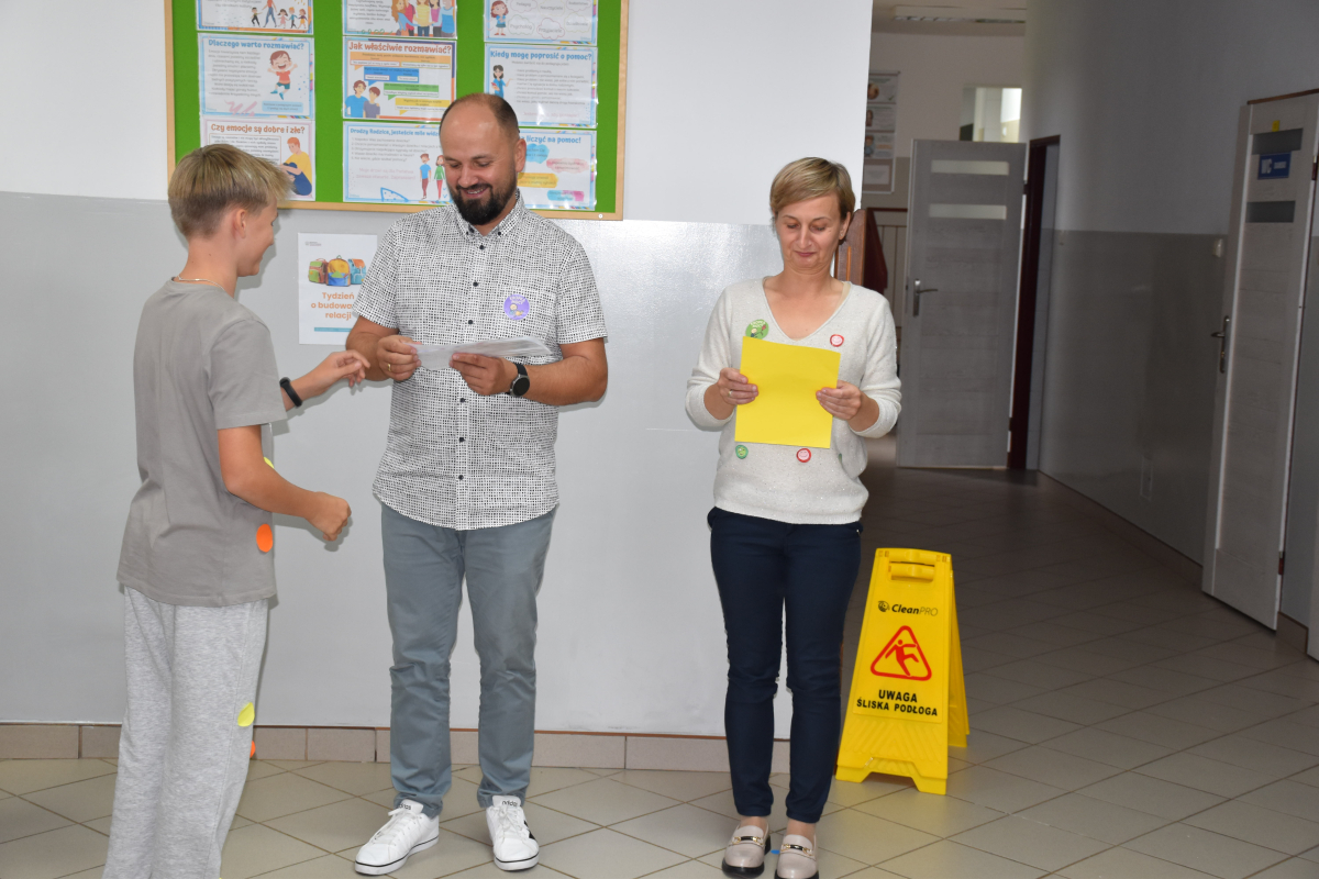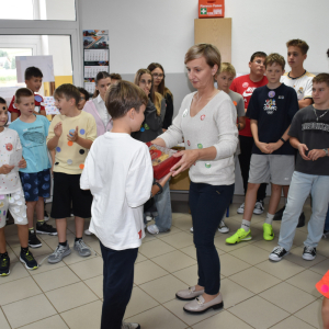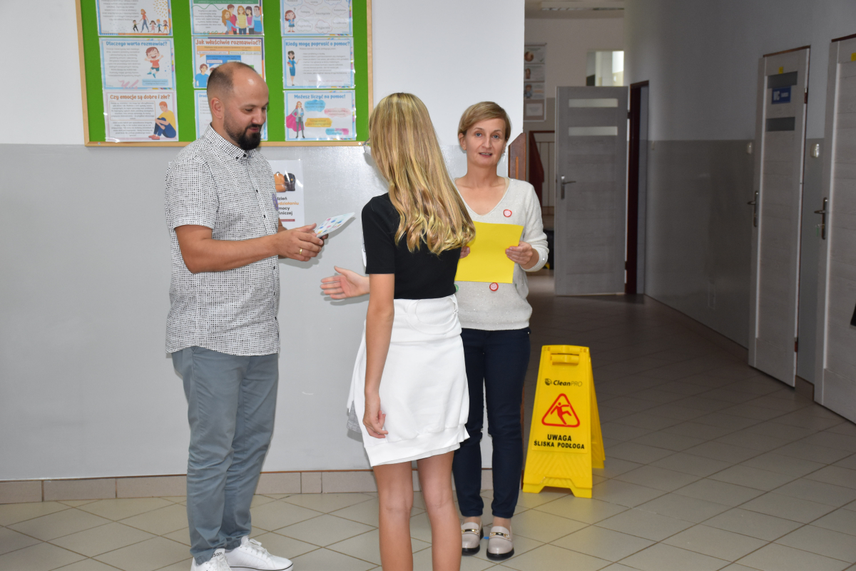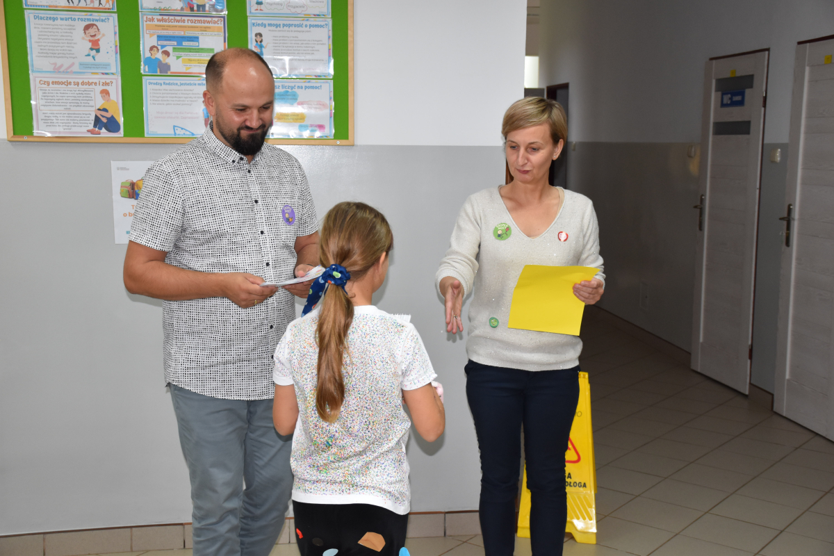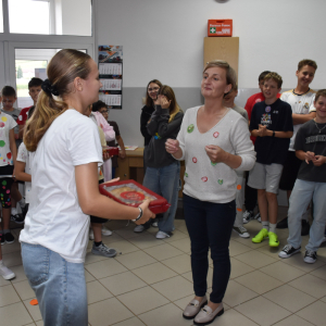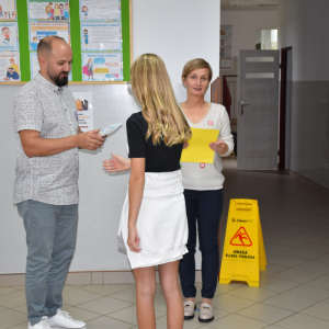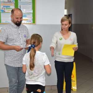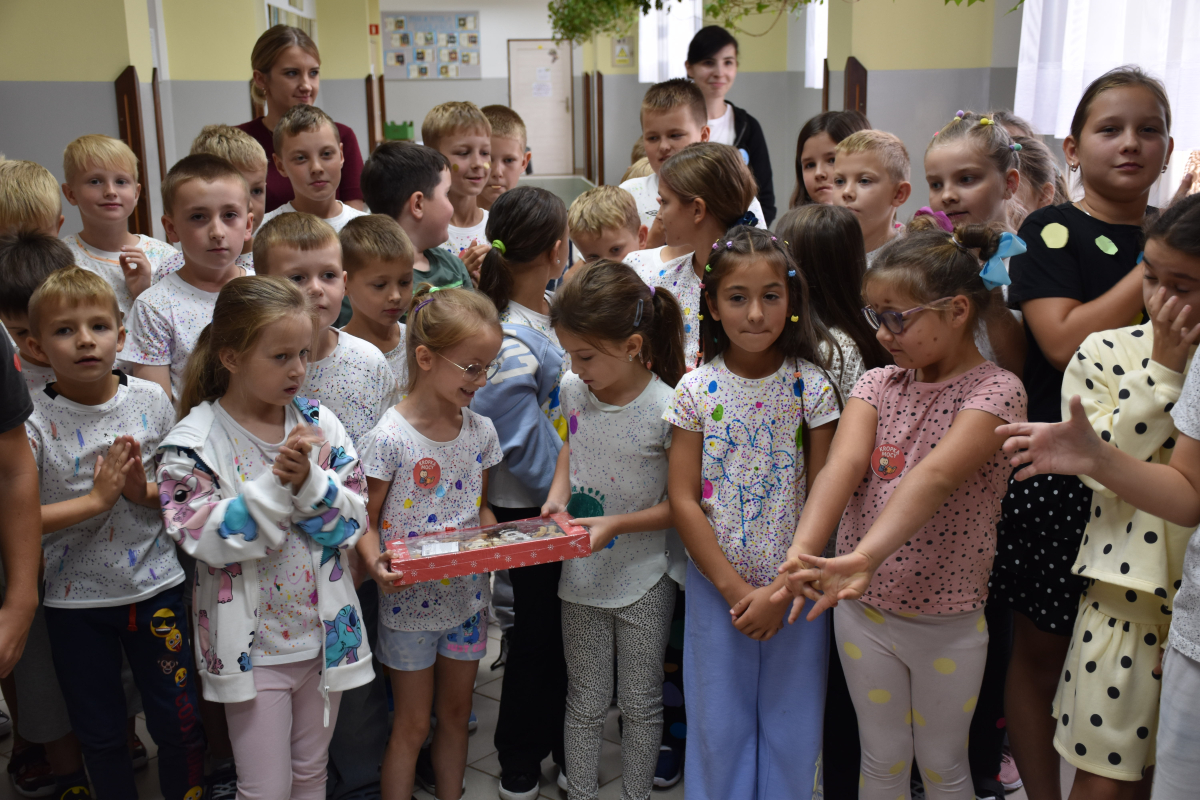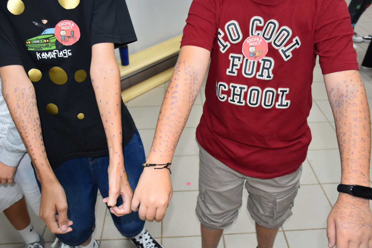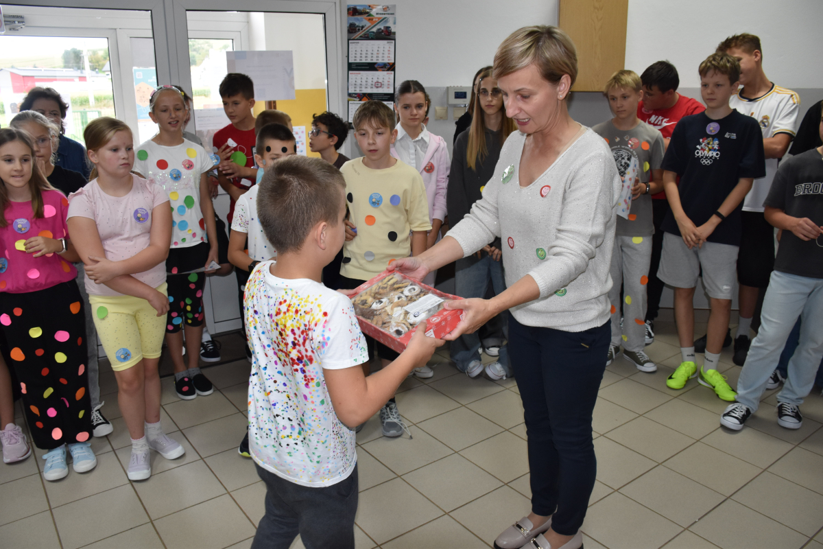 W piątek 19 września w naszej szkole Samorząd Uczniowski zorganizował obchody Międzynarodowego Dnia Kropki – Dzień Kropki Mocy. Celem tego wydarzenia było odkrywanie własnych talentów i zachęcanie do zaprezentowanie ich przed grupą. Inspiracją do stworzenia tego wydarzenia stała się Vashti, czyli bohaterka książki "The Dot"(autor: Peter H. Reyolds). Vashti nie wierzyła w swoje zdolności plastyczne. Jej nauczycielka plastyki wychwyciła talent dziewczynki malowanie pięknych kropek. Główna bohaterka - odpowiednio zmotywowana zaczęła malować nowe obrazki, a nawet tworzyć wystawy w galeriach sztuki! Vashti odkrywając swój talent, zaczęła dostrzegać, że stała się inspiracją dla wielu ludzi, którzy chętnie odwiedzili jej wystawę. Główna bohaterka zrozumiała, że wyjątkowe talenty drzemią w każdym człowieku i zaczęła zauważać je także u innych. W tym dniu uczniowie naszej szkoły zaprezentowali makijaże, stroje z elementami kropek. Z wielkim zaangażowaniem włączyli się do akcji. Najbardziej udekorowani uczniowie otrzymali bon zwalniający z odpowiedzi ustnej, ważny do końca września, natomiast klasy najbardziej wykropkowane otrzymały smakołyki. W tym dniu uczniowie mogli również zakupić przygotowane słodkości. Bardzo wszystkim dziękujemy za tak wielkie zaangażowanie i zachęcamy do udziału w kolejnych akcjach Samorządu Uczniowskiego!