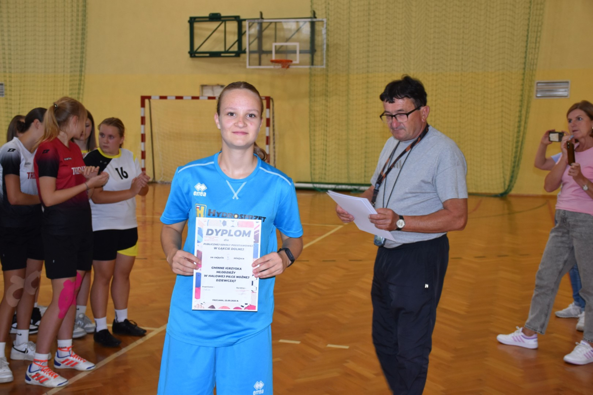 W zeszłym tygodniu nasza damska reprezentacja stanęła do rywalizacji piłkarskiej na sali gimnastycznej w Zespole Placówek Oświatowych w Trzcianie. Rozegraliśmy turniej halowej piłki nożnej w ramach Igrzysk Młodzieży Szkolnej w systemie „każdy z każdym”. Naszą szkołę reprezentowały: