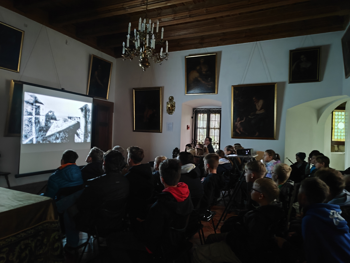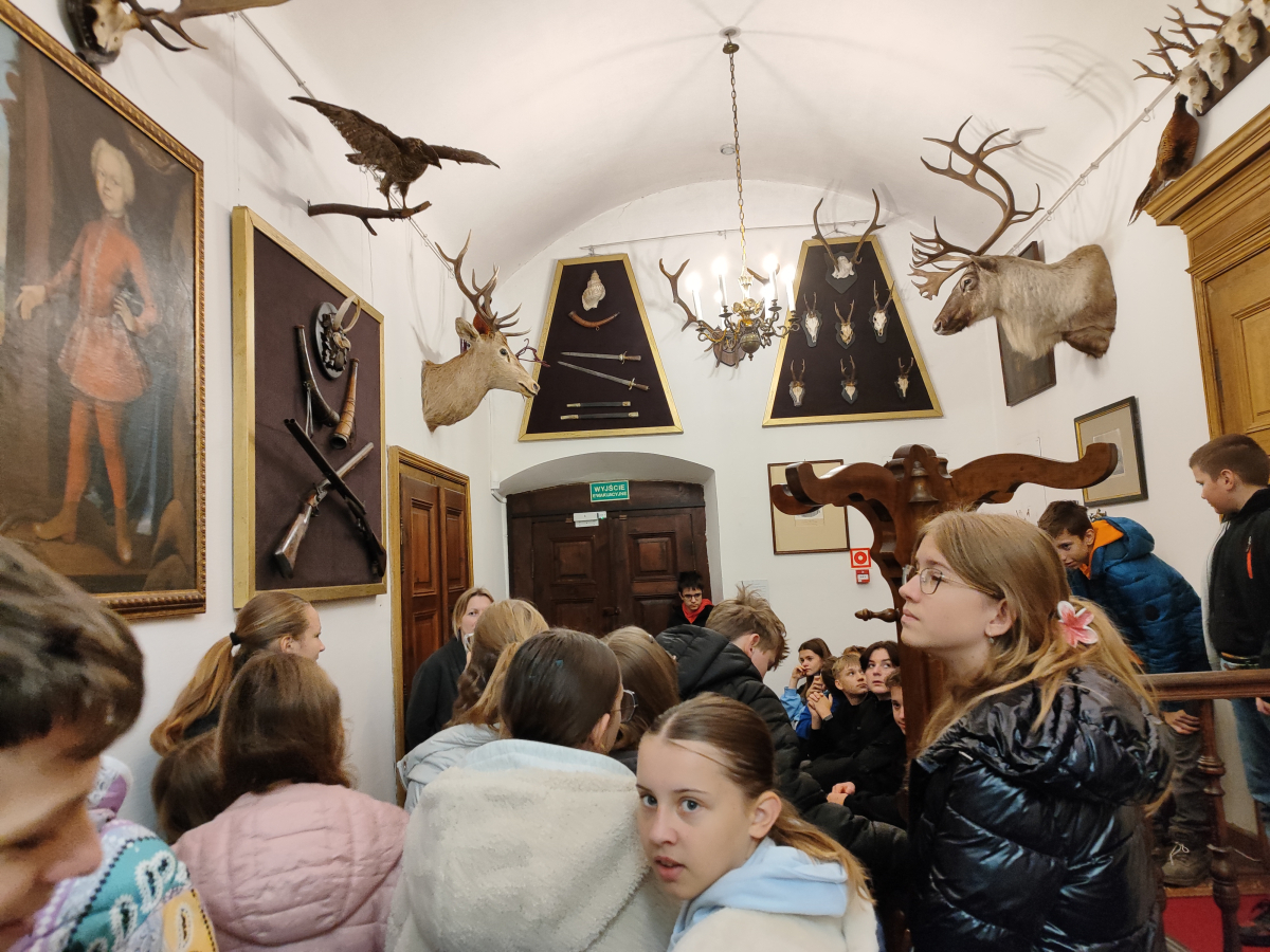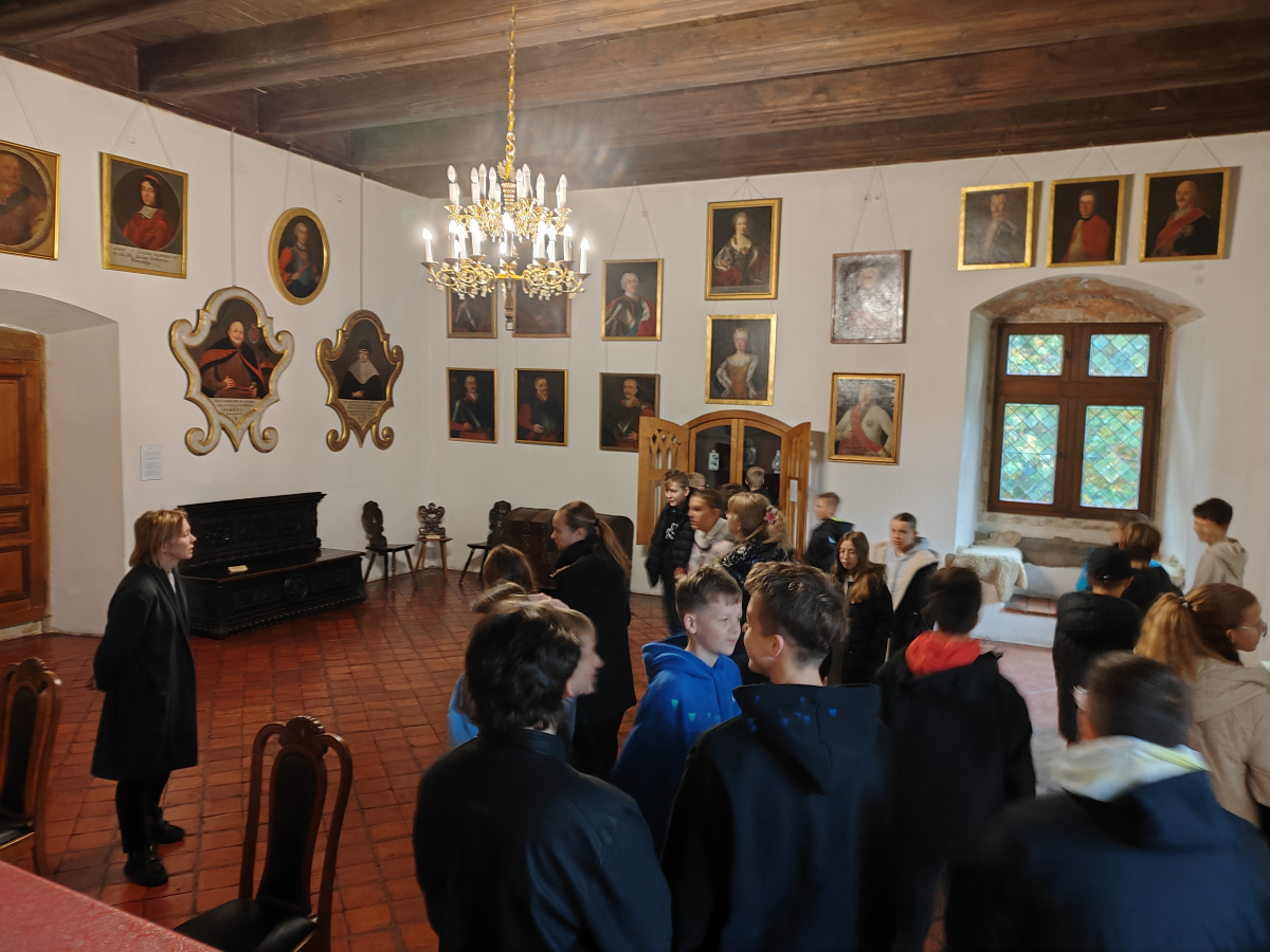 Kolejnym etapem było zwiedzanie zamku z przewodnikiem, które okazało się prawdziwą lekcją życia w średniowieczu i renesansie. Uczniowie, wędrując po komnatach, dowiedzieli się, jak radzono sobie z codziennymi wyzwaniami w dawnych czasach między innymi: przygotowanie posiłków czy korzystanie z toalety w murach zamku.