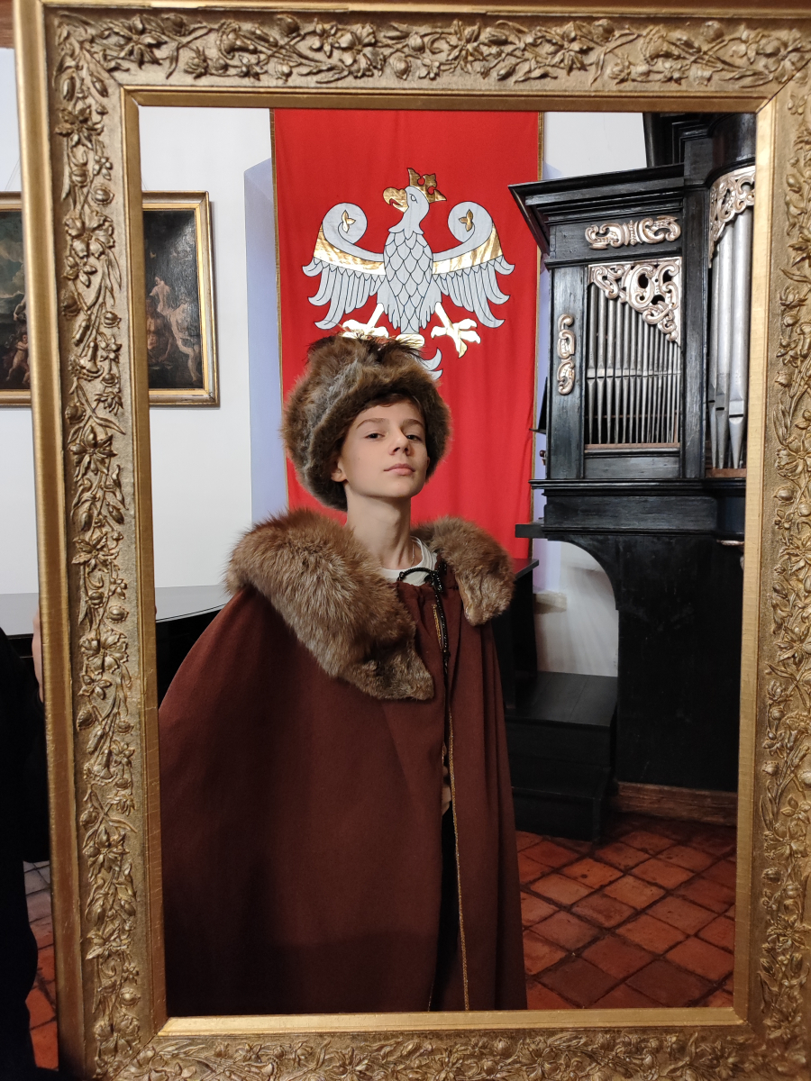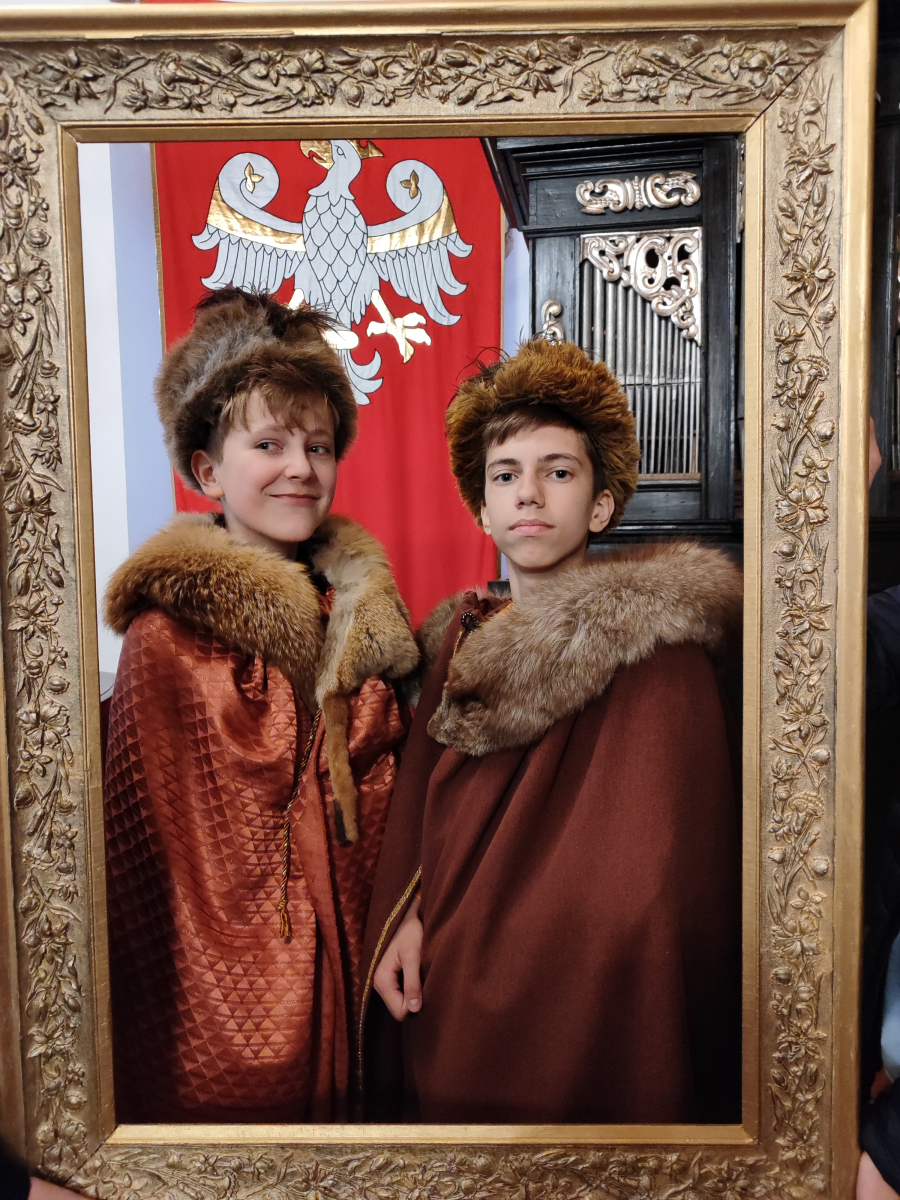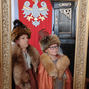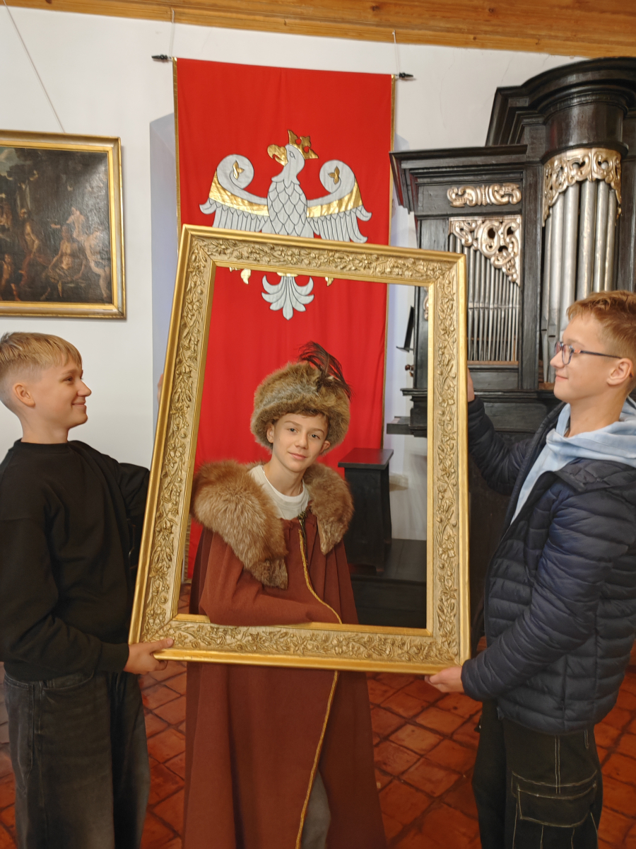 Pierwszym punktem programu była interesująca lekcja muzealna poświęcona historii fotografii. Uczniowie mieli okazję poznać zasady działania aparatu, dowiedzieć się, jak zmieniała się sztuka utrwalania obrazów na przestrzeni wieków oraz pozować do zdjęć w strojach z dawnej epoki. Była to inspirująca chwila, która pokazała, jak daleko sięga ewolucja tej dziedziny, którą dziś tak naturalnie wykorzystujemy w życiu codziennym.