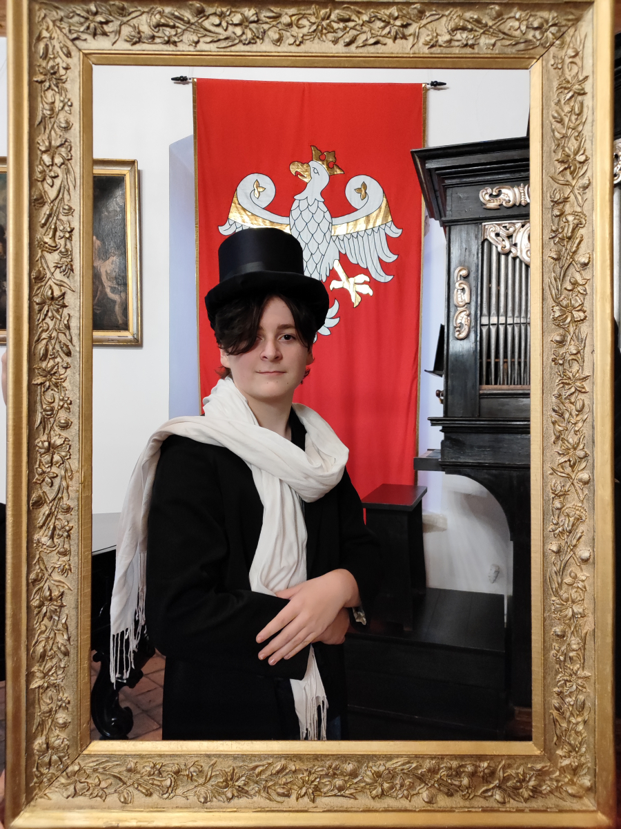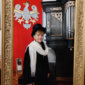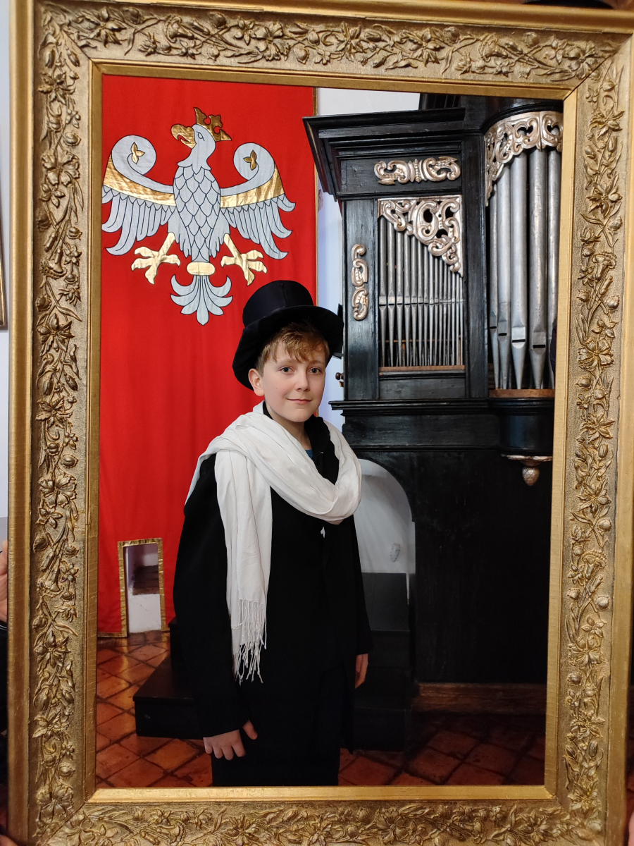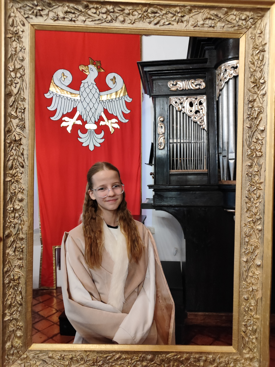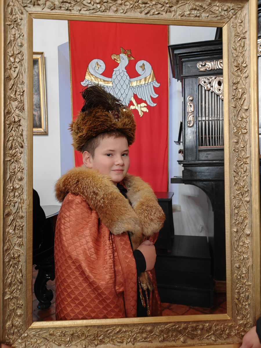 Pierwszym punktem programu była interesująca lekcja muzealna poświęcona historii fotografii. Uczniowie mieli okazję poznać zasady działania aparatu, dowiedzieć się, jak zmieniała się sztuka utrwalania obrazów na przestrzeni wieków oraz pozować do zdjęć w strojach z dawnej epoki. Była to inspirująca chwila, która pokazała, jak daleko sięga ewolucja tej dziedziny, którą dziś tak naturalnie wykorzystujemy w życiu codziennym.