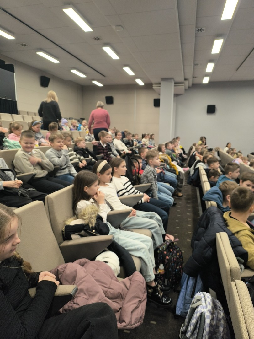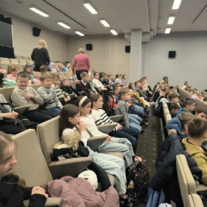 19 lutego 2026 roku przedszkolaki oraz uczniowie klas I–III wzięli udział w wyjeździe do Brzeska, gdzie w Miejskim Ośrodku Kultury obejrzeli spektakl profilaktyczny pt. „Klik, klik i uśmiech znikł” w wykonaniu aktorów z Poznańskiego Teatru Aktora.