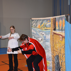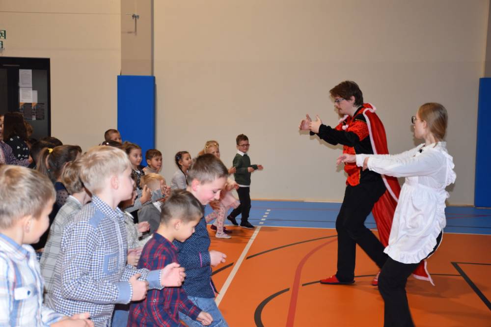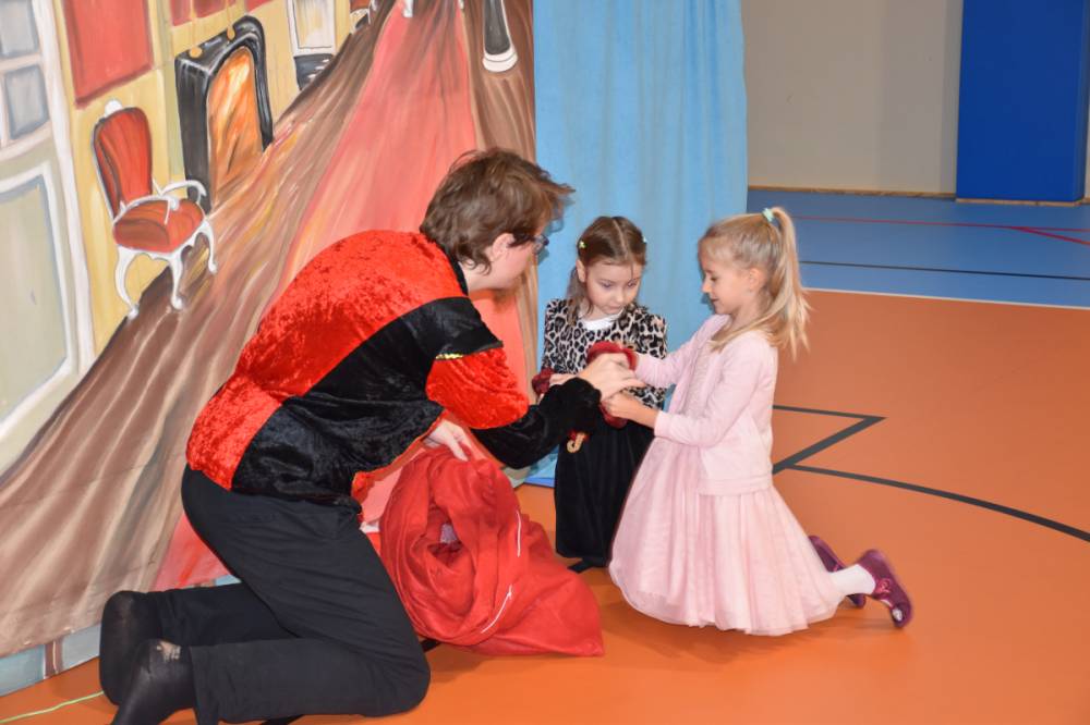 Spotkanie rozpoczęło się od obejrzenia spektaklu teatralnego pt. „Legenda o świętym Mikołaju” w wykonaniu Teatru Eden z Wieliczki. Przedstawienie w piękny sposób przypomniało najmłodszym, że prawdziwa radość płynie z bezinteresownego pomagania i dzielenia się z innymi.