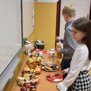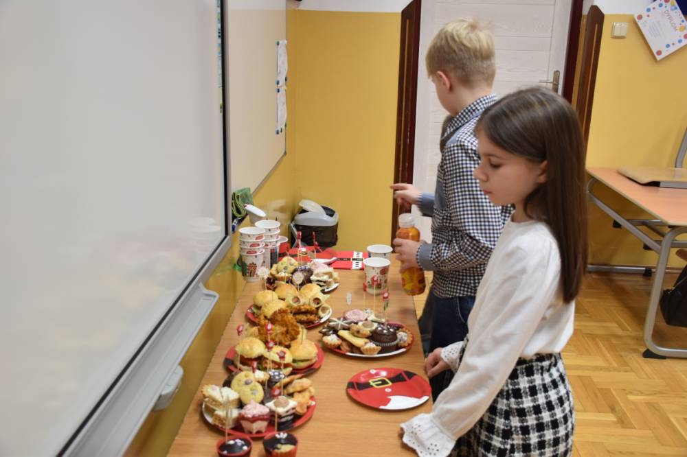 Po spektaklu na dzieci czekał pyszny poczęstunek przygotowany przez rodziców. Nie zabrakło również okazji do wykonania pamiątkowych, świątecznych zdjęć z zabawnymi akcesoriami i mikołajkowymi gadżetami.