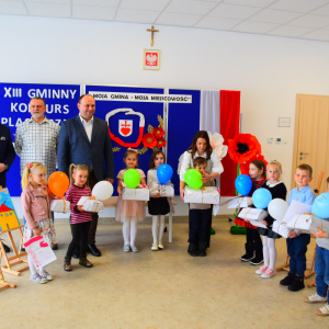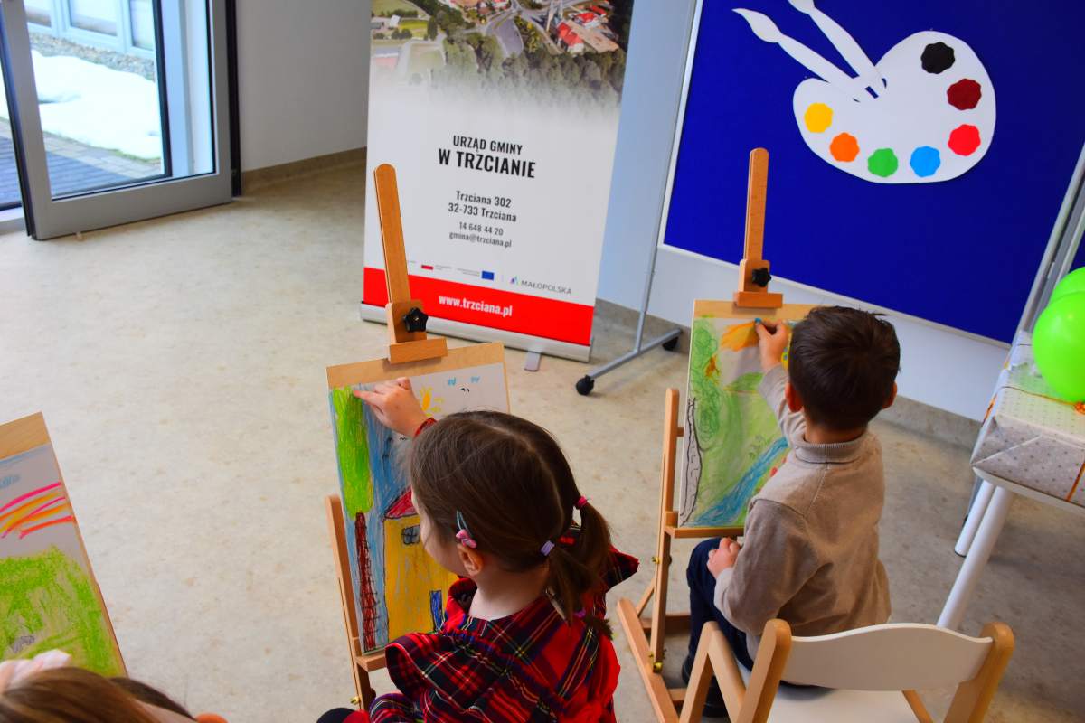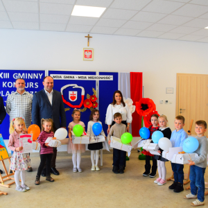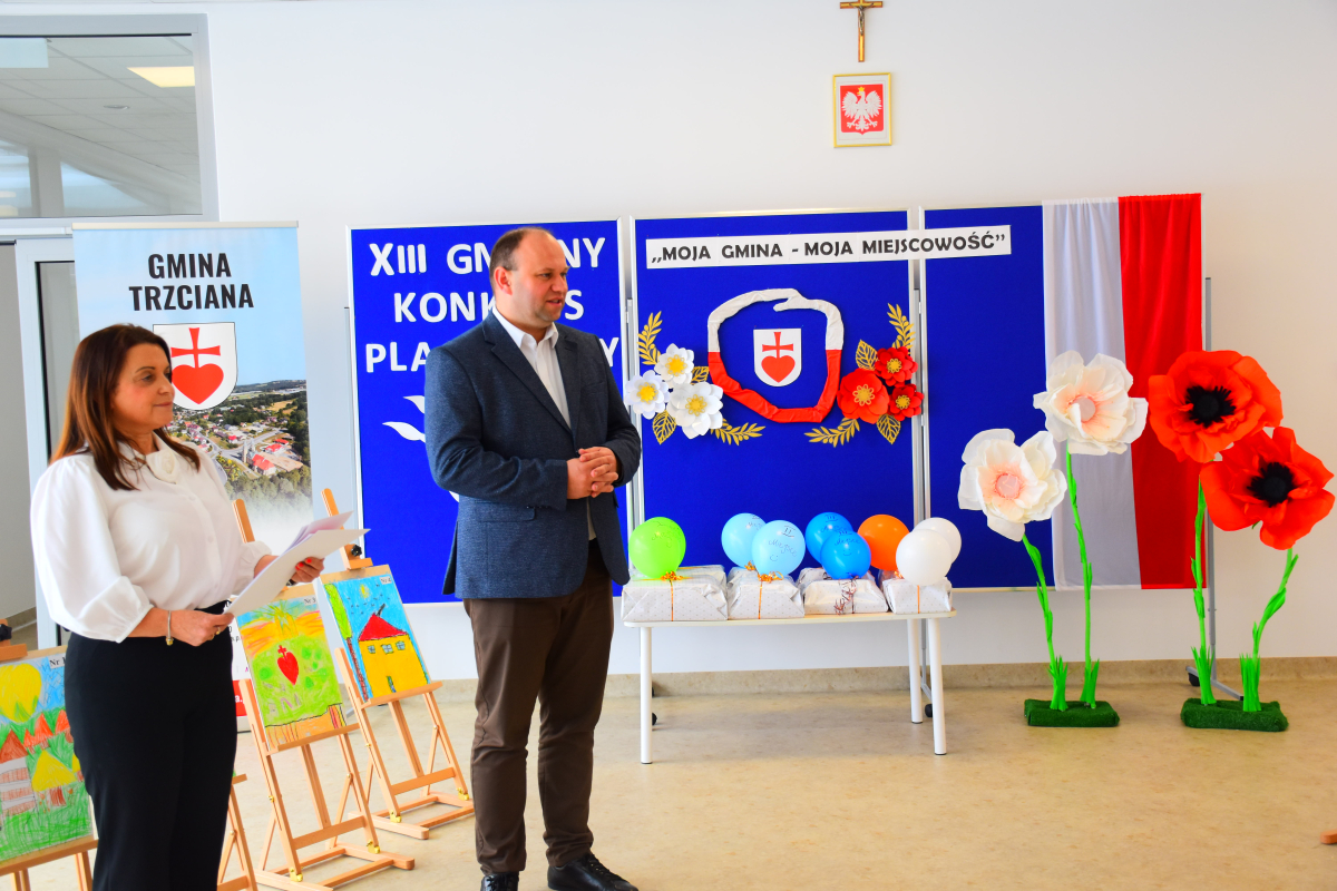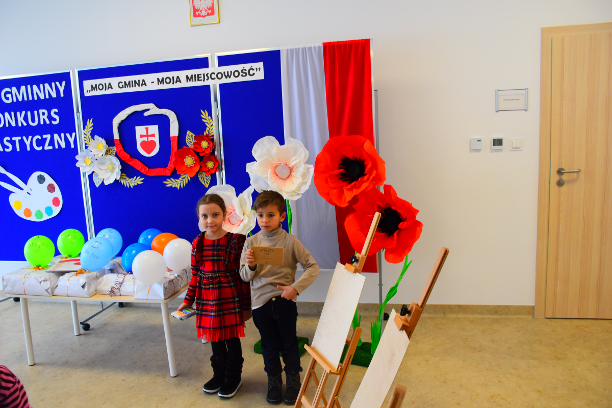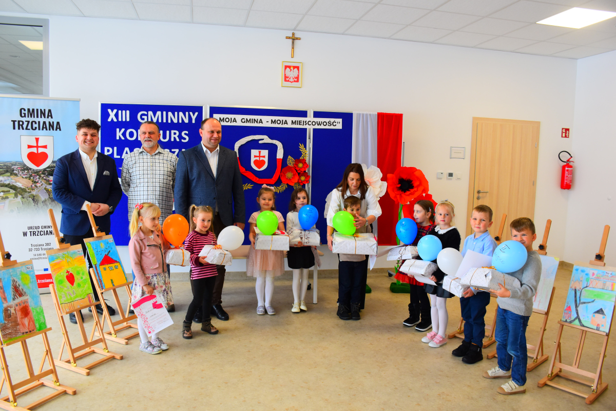 27 listopada 2025 r. w Publicznym Przedszkolu w Trzcianie odbył się XIII Gminny Konkurs Plastyczny „MOJA GMINA- MOJA MIEJSCOWOŚĆ” pod patronatem Wójta Gminy Trzciana pana Cezarego Stawarza. Nasze przedszkole reprezentowała pięciolatka Oliwia Długosz i sześciolatek Dominik Tworzydło. Dzieci w swoich pracach rysowały ważne miejsca w naszej gminie, używając różnego rodzaju kredek, pasteli, rysując na sztalugach. Miło nam poinformować, że I miejsce w grupie sześciolatków zajął Dominik, a Oliwia III miejsce w grupie pięciolatków. Dzieci otrzymały dyplomy i nagrody rzeczowe, które wręczał Wójt Gminy. Serdecznie gratulujemy i życzymy dalszych sukcesów.