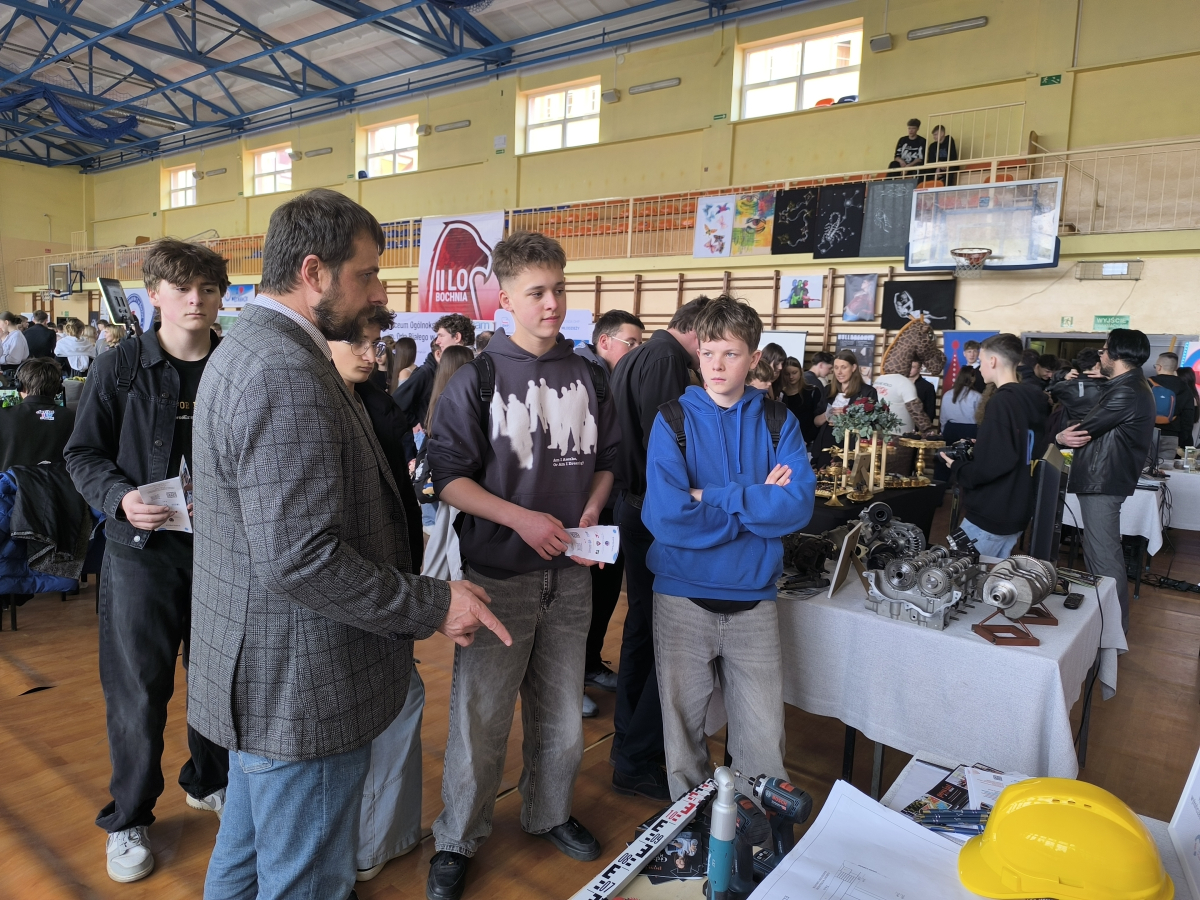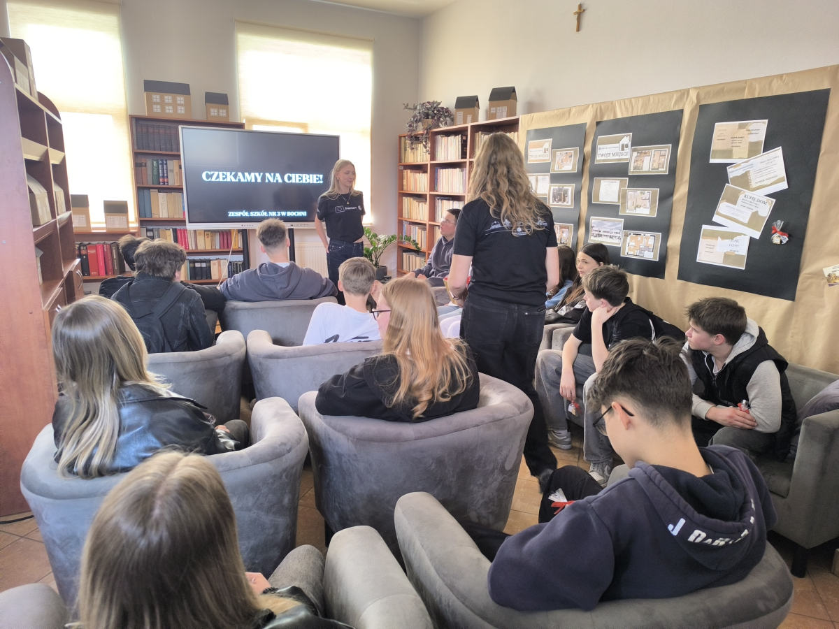 Dnia 19 marca uczniowie naszej szkoły wzięli udział w Giełdzie Edukacyjnej, która odbyła się w I Liceum Ogólnokształcącym im. Króla Kazimierza Wielkiego w Bochni. Wydarzenie to było doskonałą okazją do zapoznania się z ofertą edukacyjną szkół ponadpodstawowych z terenu powiatu bocheńskiego. Podczas spotkania młodzież miała możliwość bezpośrednich rozmów z przedstawicielami szkół, poznania proponowanych kierunków kształcenia oraz warunków nauki. Uczniowie mogli również dowiedzieć się więcej o możliwościach rozwoju zainteresowań oraz perspektywach dalszej edukacji i kariery zawodowej. Mamy nadzieję, że udział w Giełdzie Edukacyjnej pomoże młodzieży w podjęciu bardziej świadomych decyzji dotyczących wyboru dalszej ścieżki kształcenia.