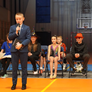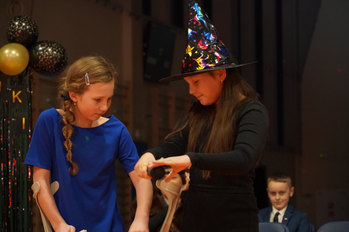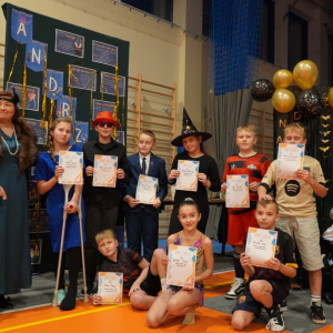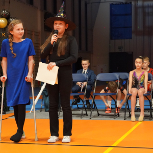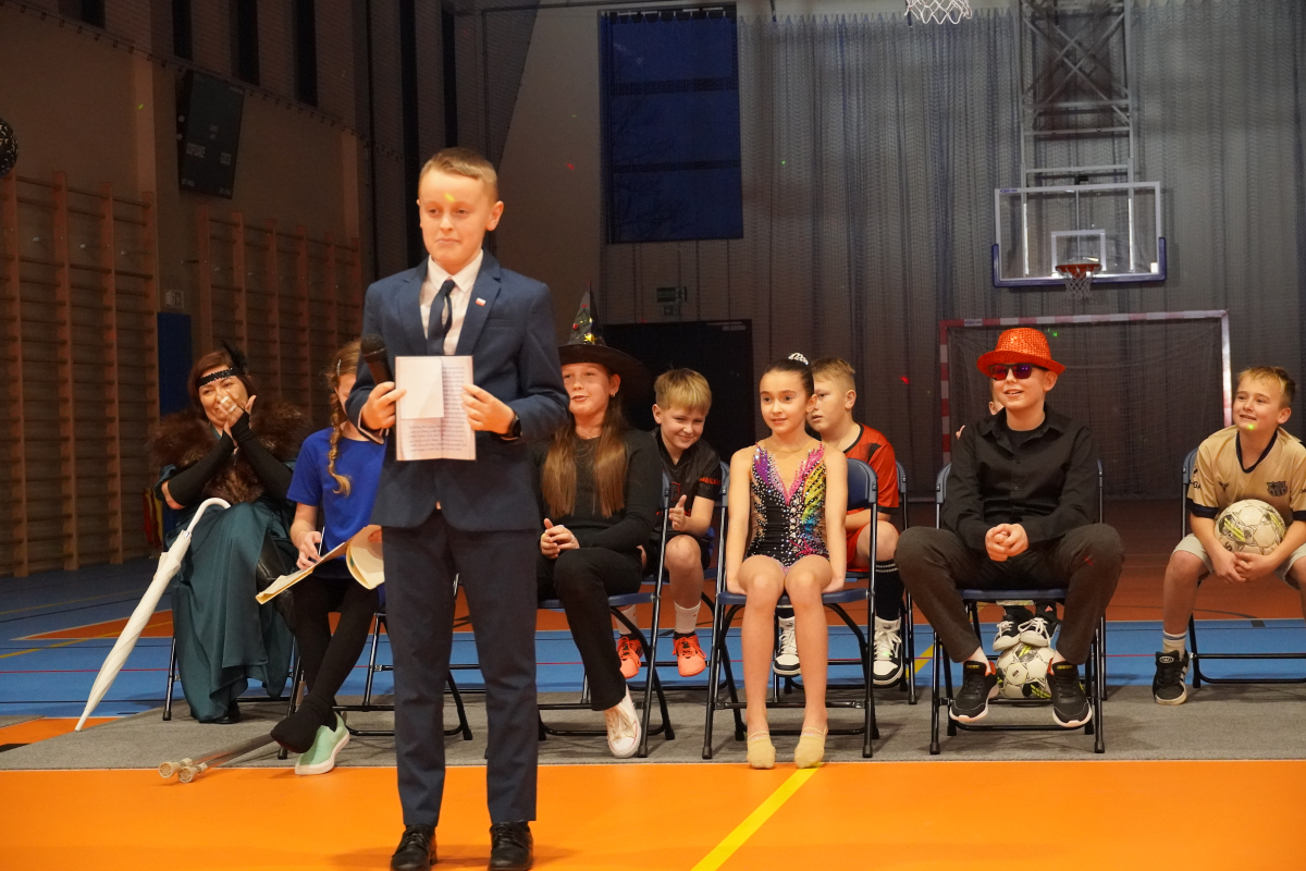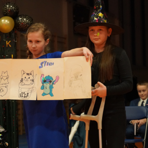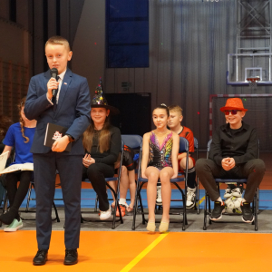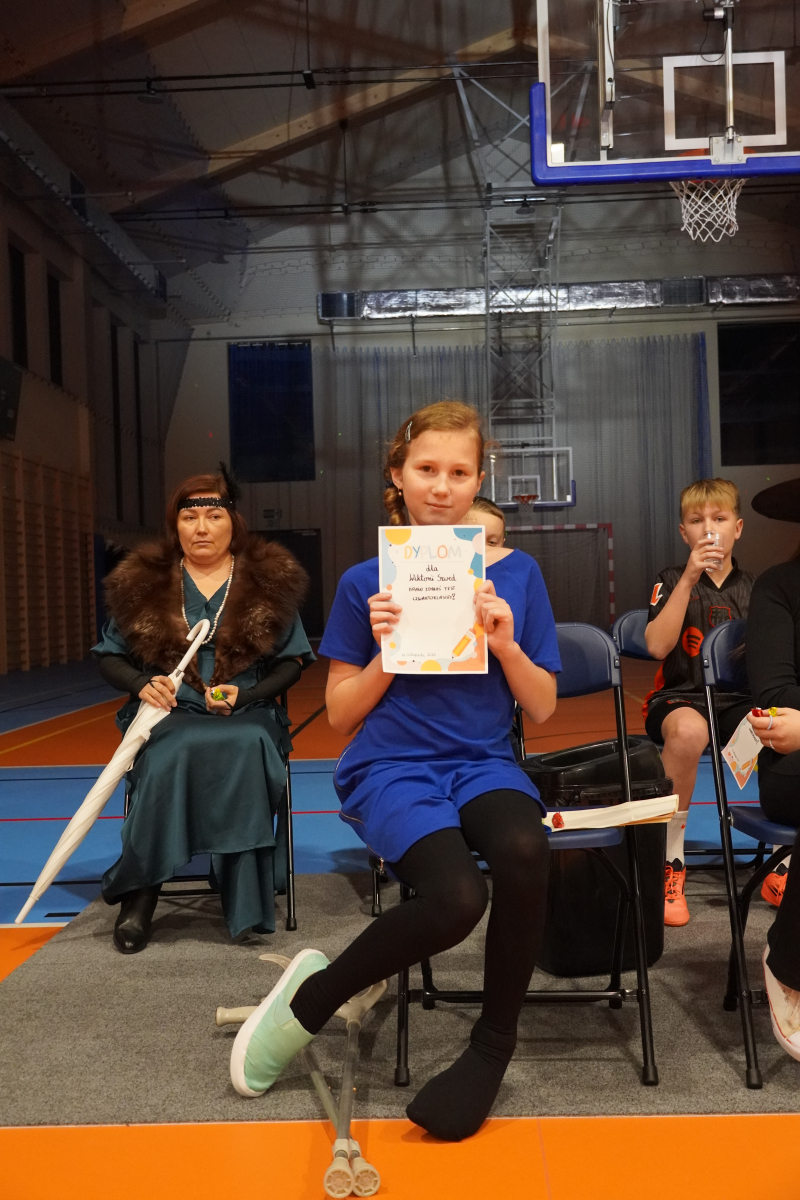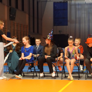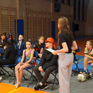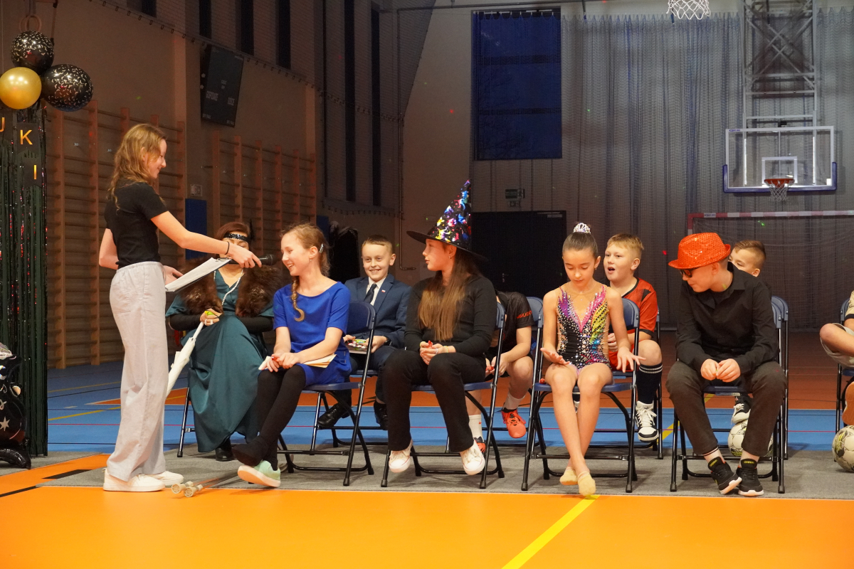 Otrzęsiny klasy 4. Uczniowie musieli zmierzyć się z trudnymi pytaniami na temat szkoły i nauczycieli, zaprezentowali się od najlepszej strony przedstawiając swoje talenty i odgadując muzyczne zagadki. Za dobre odpowiedzi otrzymali słodką niespodziankę, a za złą zjedzenie cytryny lub ogórka kiszonego z ostrym sosem. Dzielnie wykonali wszystkie zadania i uczniowie klasy 6 pogratulowali im wręczając dyplom przyjęcia do społeczności szkolnej. Życzymy powodzenia w starszych klasach.