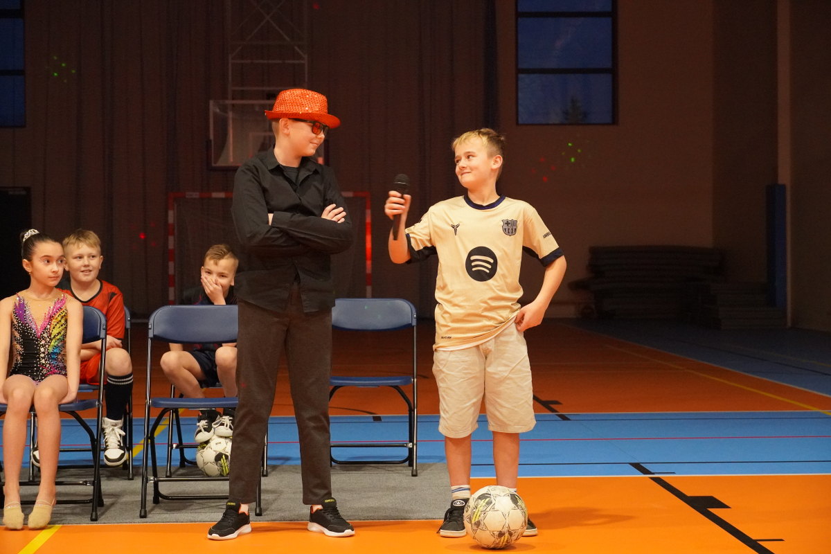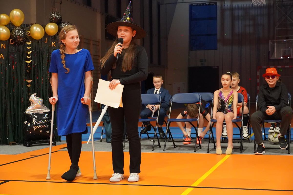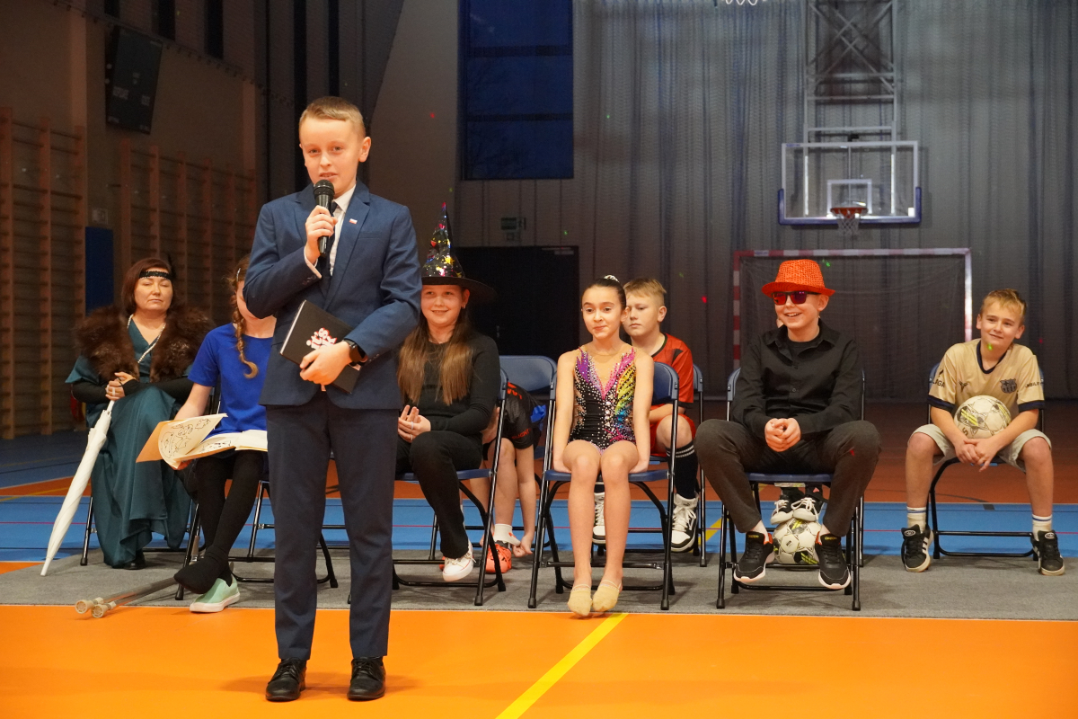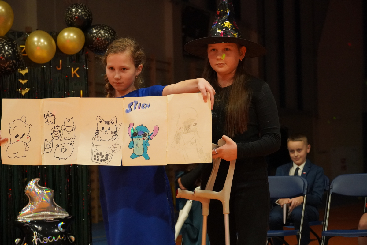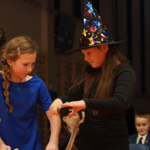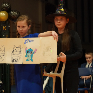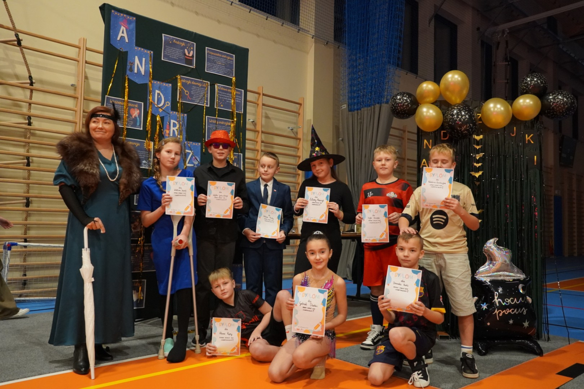 Otrzęsiny klasy 4. Uczniowie musieli zmierzyć się z trudnymi pytaniami na temat szkoły i nauczycieli, zaprezentowali się od najlepszej strony przedstawiając swoje talenty i odgadując muzyczne zagadki. Za dobre odpowiedzi otrzymali słodką niespodziankę, a za złą zjedzenie cytryny lub ogórka kiszonego z ostrym sosem. Dzielnie wykonali wszystkie zadania i uczniowie klasy 6 pogratulowali im wręczając dyplom przyjęcia do społeczności szkolnej. Życzymy powodzenia w starszych klasach.