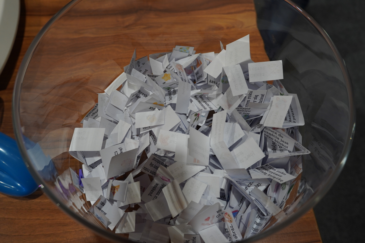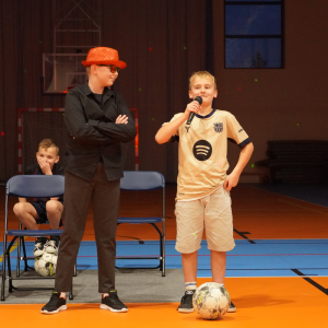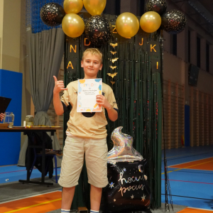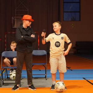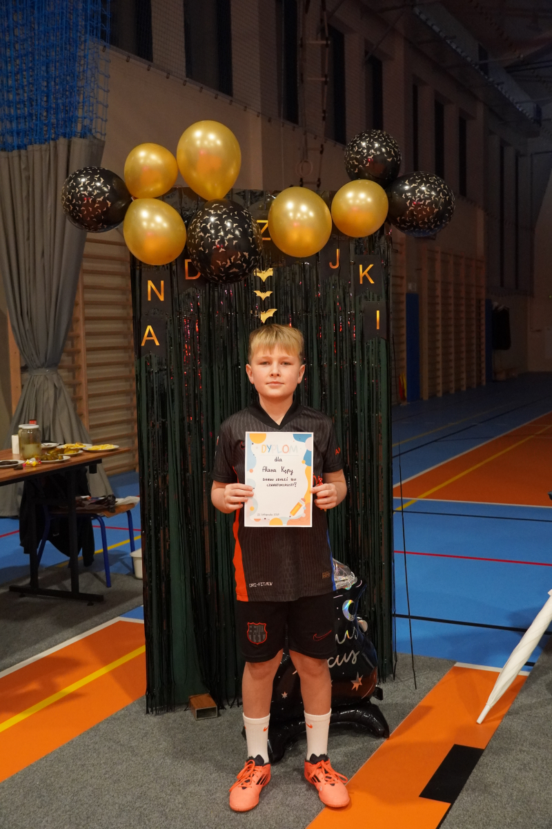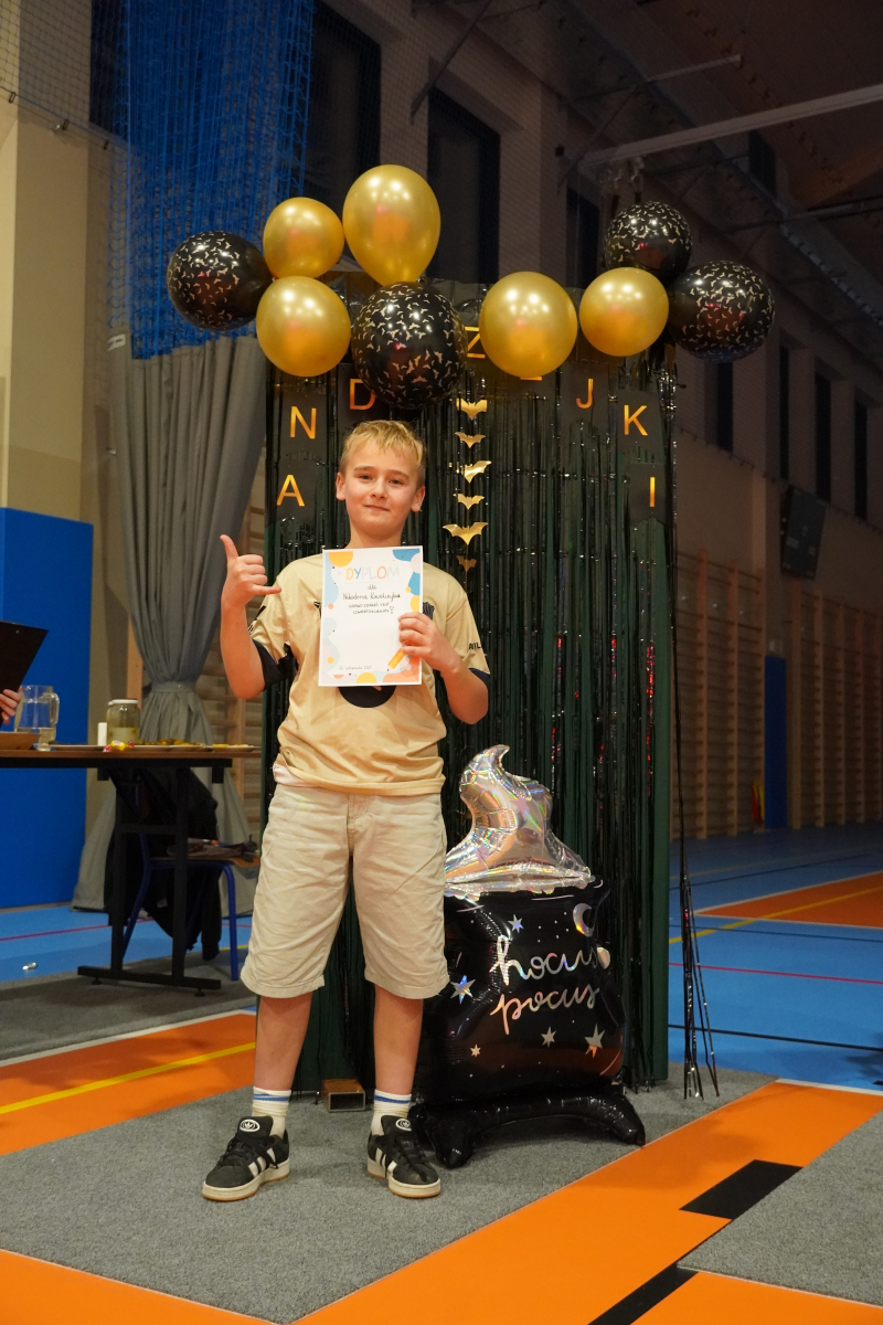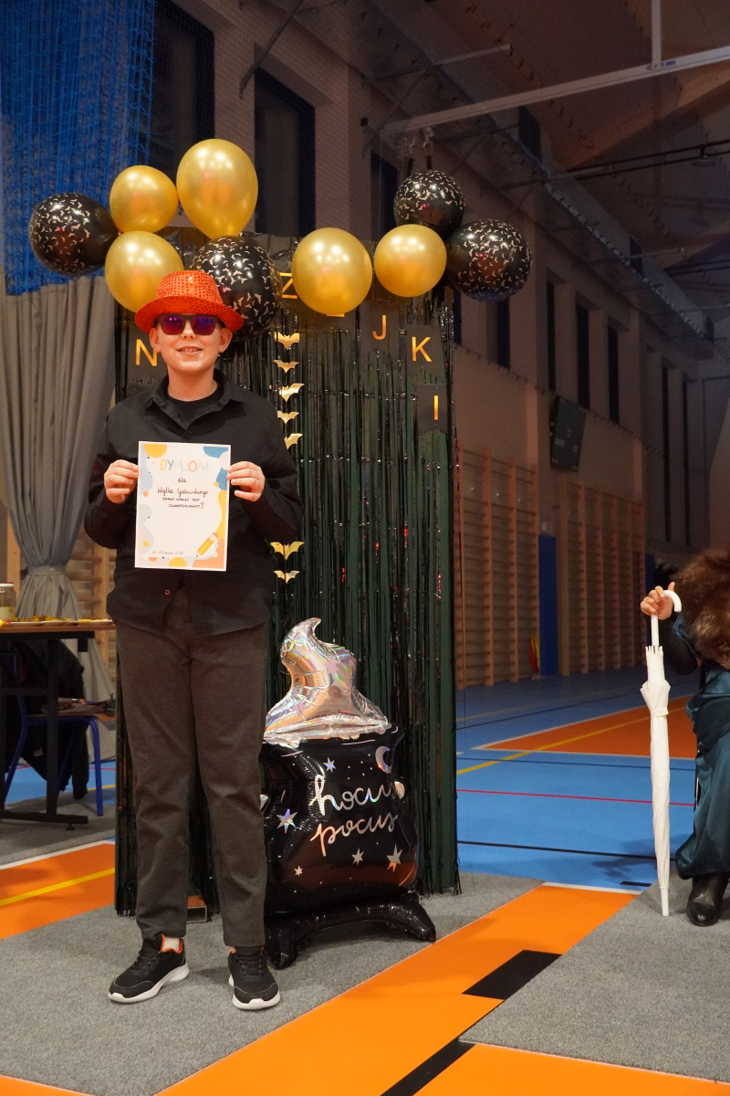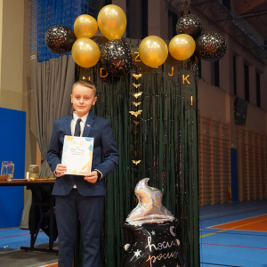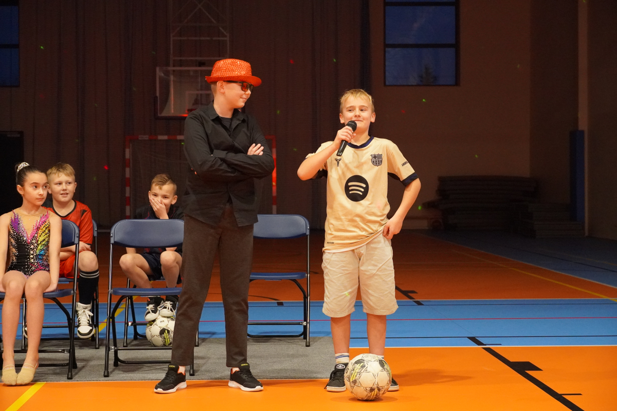 Otrzęsiny klasy 4. Uczniowie musieli zmierzyć się z trudnymi pytaniami na temat szkoły i nauczycieli, zaprezentowali się od najlepszej strony przedstawiając swoje talenty i odgadując muzyczne zagadki. Za dobre odpowiedzi otrzymali słodką niespodziankę, a za złą zjedzenie cytryny lub ogórka kiszonego z ostrym sosem. Dzielnie wykonali wszystkie zadania i uczniowie klasy 6 pogratulowali im wręczając dyplom przyjęcia do społeczności szkolnej. Życzymy powodzenia w starszych klasach.
