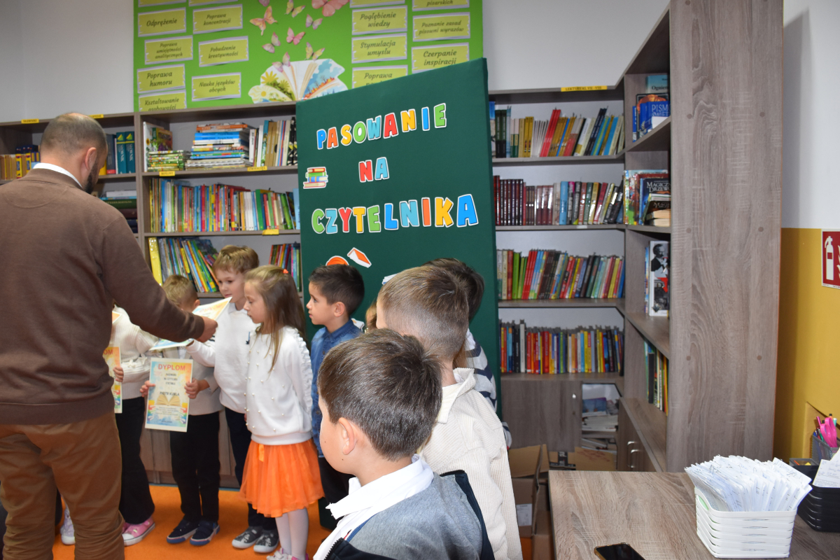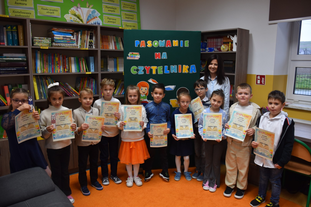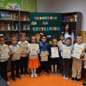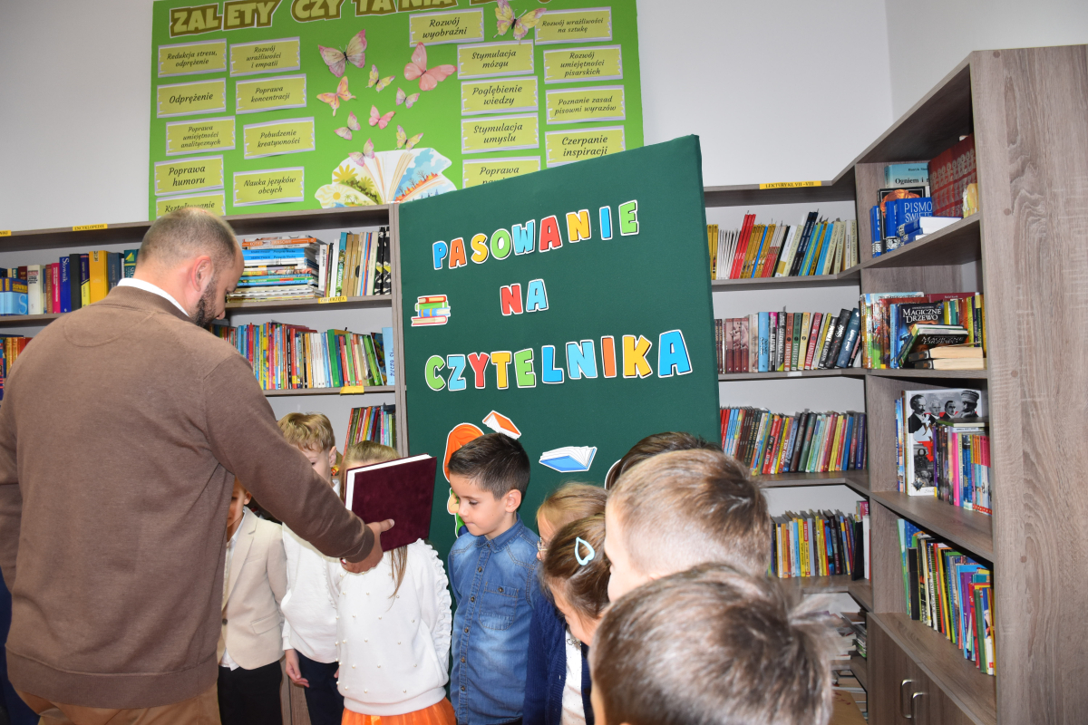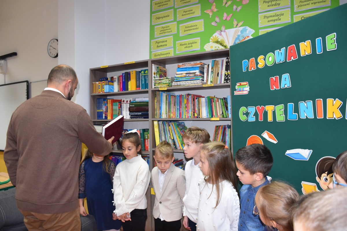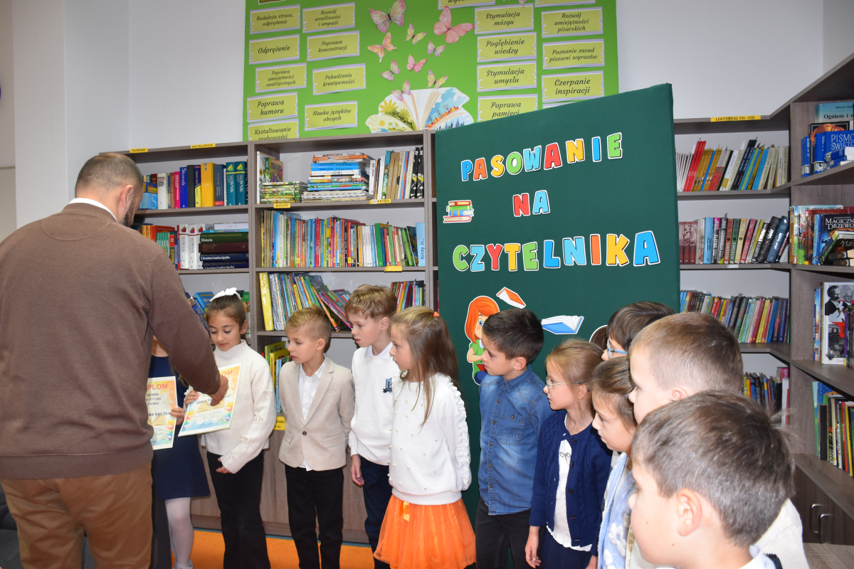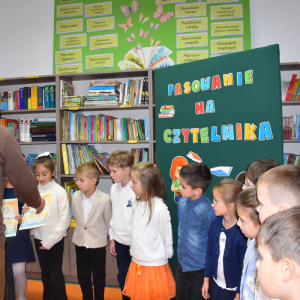 22 października w naszej szkole odbyło się Pasowanie na Czytelnika uczniów klasy pierwszej. Zanim jednak zostali przyjęci do grona czytelników pierwszoklasiści musieli rozwiązać różne zadania i zagadki związane z bajkami i literaturą dziecięcą, a także wykazać się wiedzą na temat zasad zachowania w bibliotece. Po wykonaniu wszystkich zadań nadszedł najważniejszy moment uroczystości – Pan Dyrektor dokonał symbolicznego pasowania każdego ucznia na czytelnika. Gratulujemy naszym nowym czytelnikom i życzymy wielu wspaniałych przygód z literaturą.