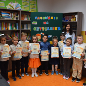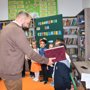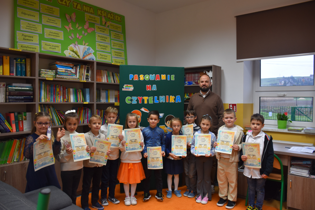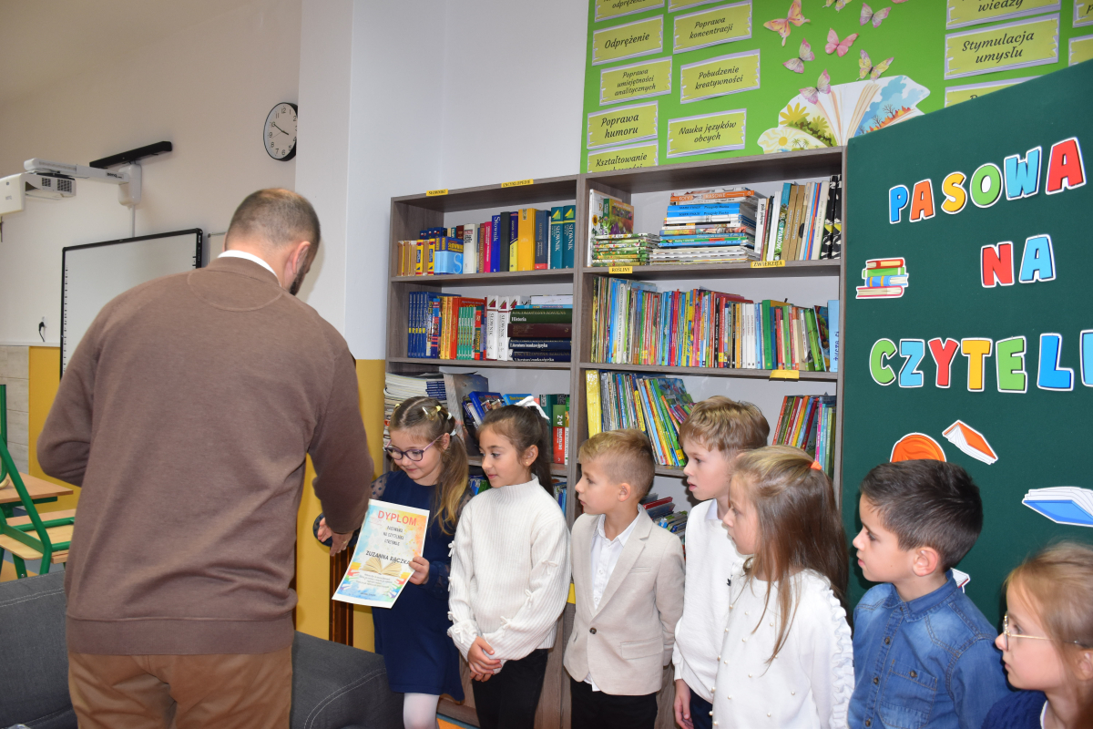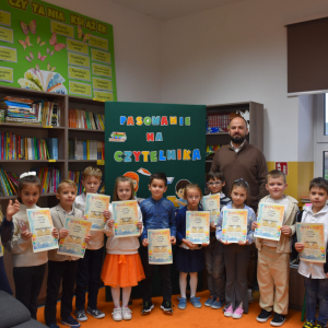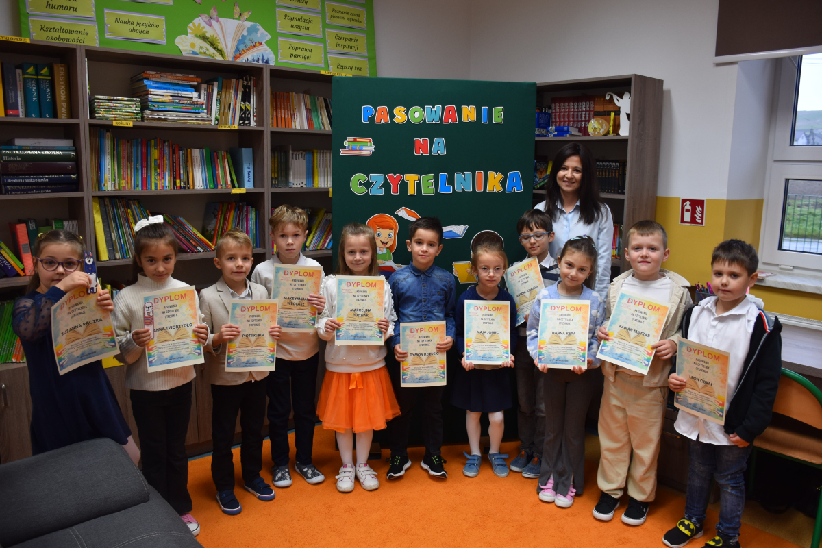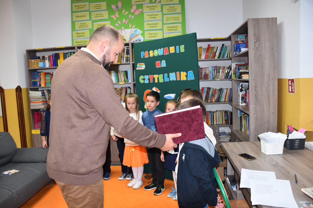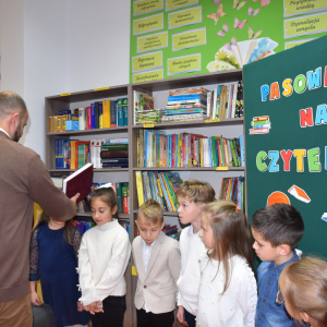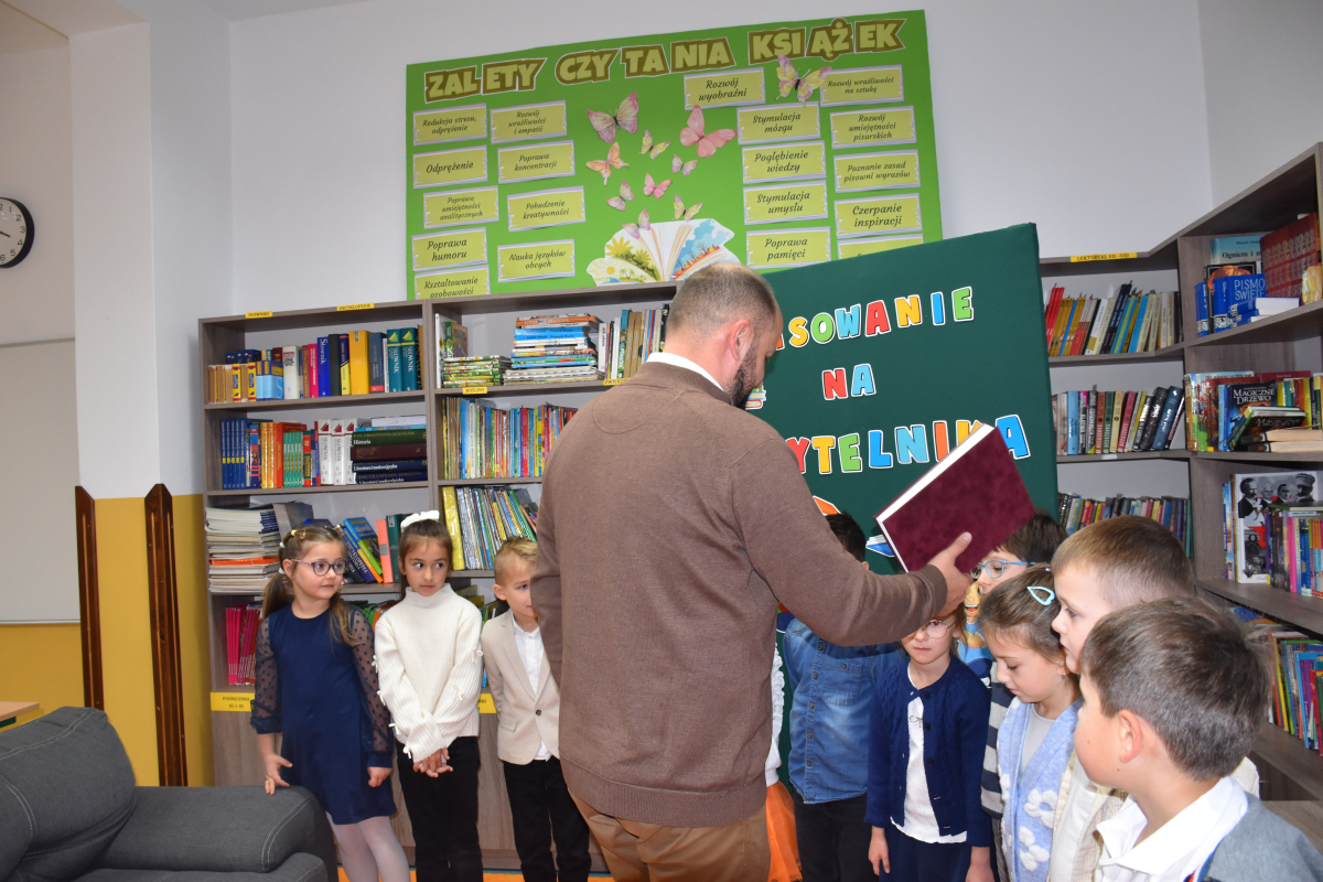 22 października w naszej szkole odbyło się Pasowanie na Czytelnika uczniów klasy pierwszej. Zanim jednak zostali przyjęci do grona czytelników pierwszoklasiści musieli rozwiązać różne zadania i zagadki związane z bajkami i literaturą dziecięcą, a także wykazać się wiedzą na temat zasad zachowania w bibliotece. Po wykonaniu wszystkich zadań nadszedł najważniejszy moment uroczystości – Pan Dyrektor dokonał symbolicznego pasowania każdego ucznia na czytelnika. Gratulujemy naszym nowym czytelnikom i życzymy wielu wspaniałych przygód z literaturą.