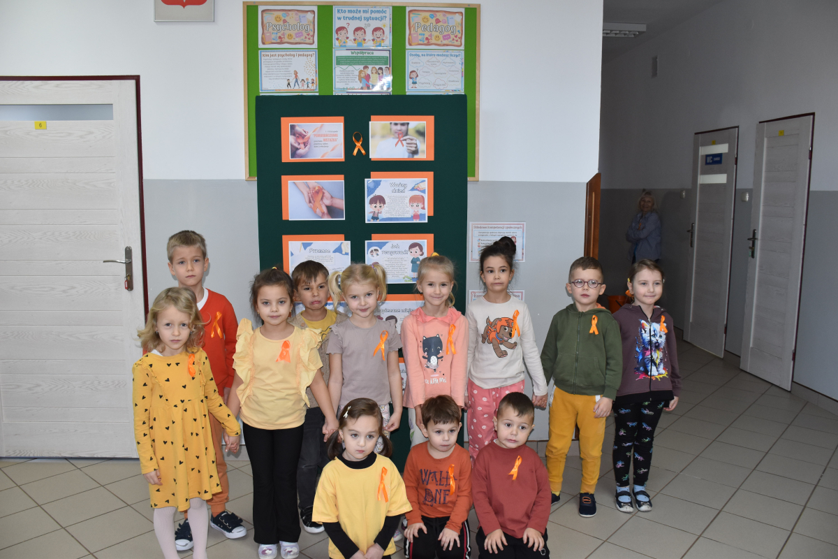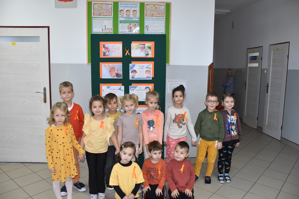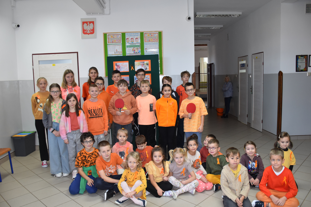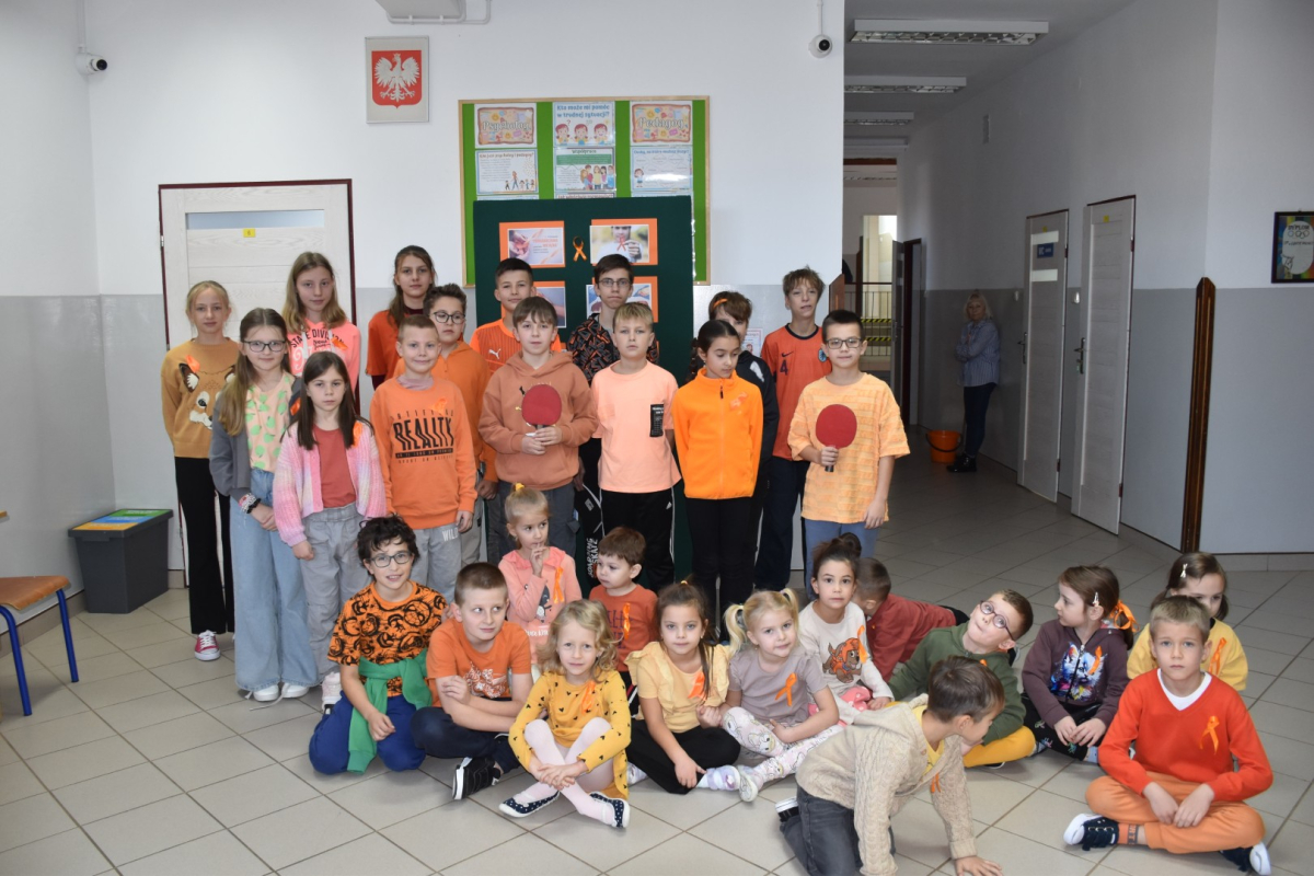 Już po raz trzeci nasza szkoła zorganizowała Kampanię „Pomarańczowa Wstążka” – akcję społeczną trwającą od 1 do 19 listopada 2025 roku. Kampania ta miała na celu zwrócenie uwagi na problem przemocy wobec dzieci i młodzieży, zwiększenie świadomość społeczeństwa oraz promowanie działania mających na celu ich ochronę. W tym dniu uczniowie ubrali się na pomarańczowo oraz otrzymali pomarańczowe wstążki jako znak wsparcia, solidarności i zobowiązania do działania. Nosząc ją, wyrażali sprzeciw wobec wszelkich form przemocy, a także gotowość do budowania świata, w którym dzieci mogą czuć się bezpiecznie.