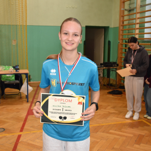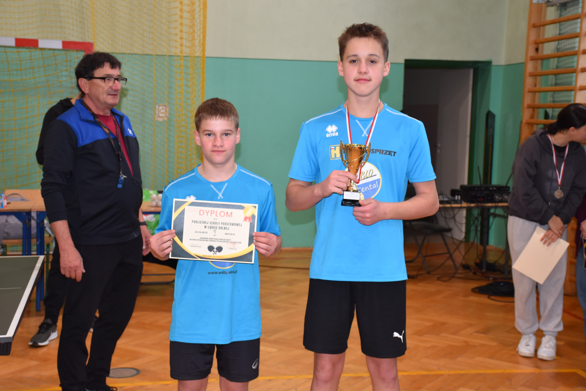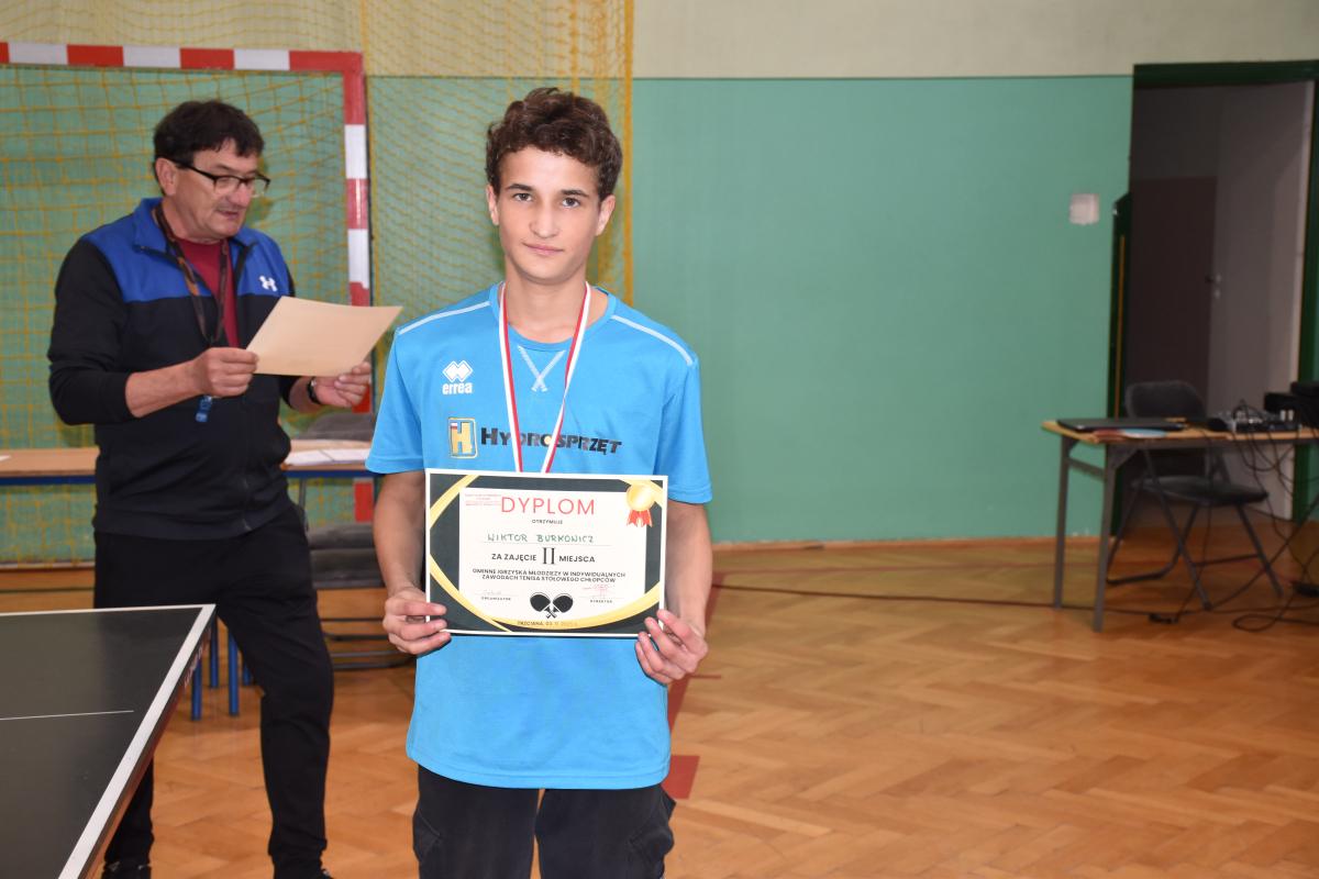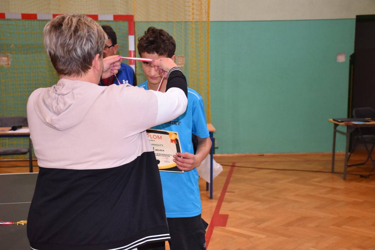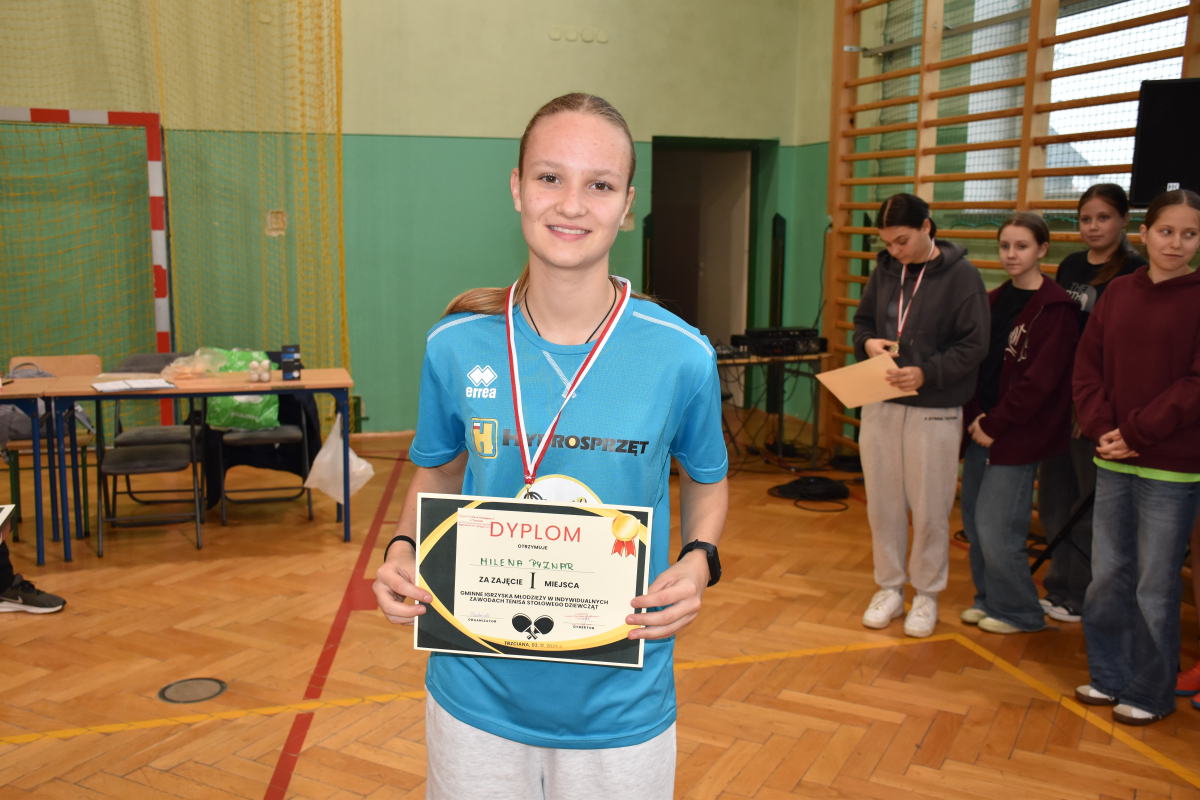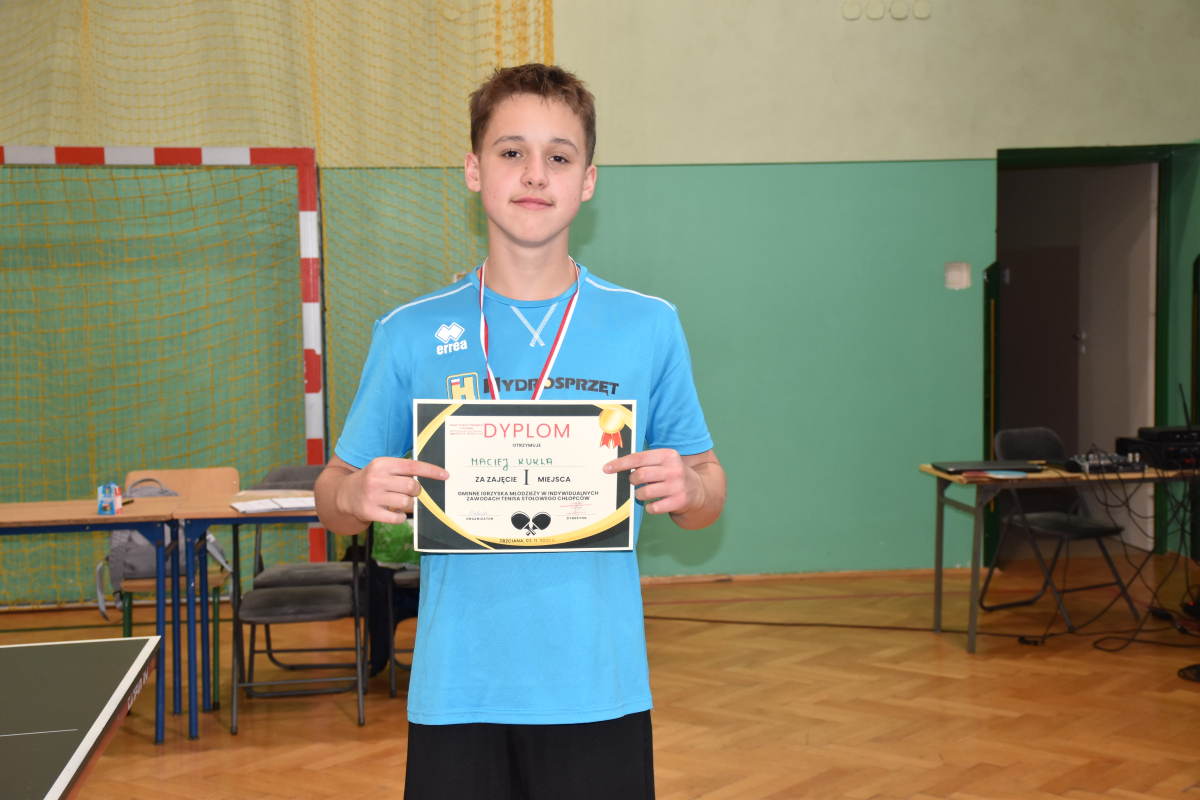Nasi uczniowie odnieśli wspaniałe sukcesy w zawodach sportowych w ramach Igrzysk Młodzieży Szkolnej w tenisie stołowym. W klasyfikacji indywidualnej zdobyli aż dwa złote medale (Maciej Kukla, Milena Pyznar) oraz jeden srebrny medal (Wiktor Burkowicz), pokazując wysoki poziom umiejętności i sportowej rywalizacji.