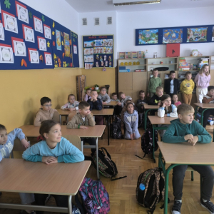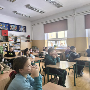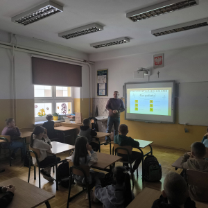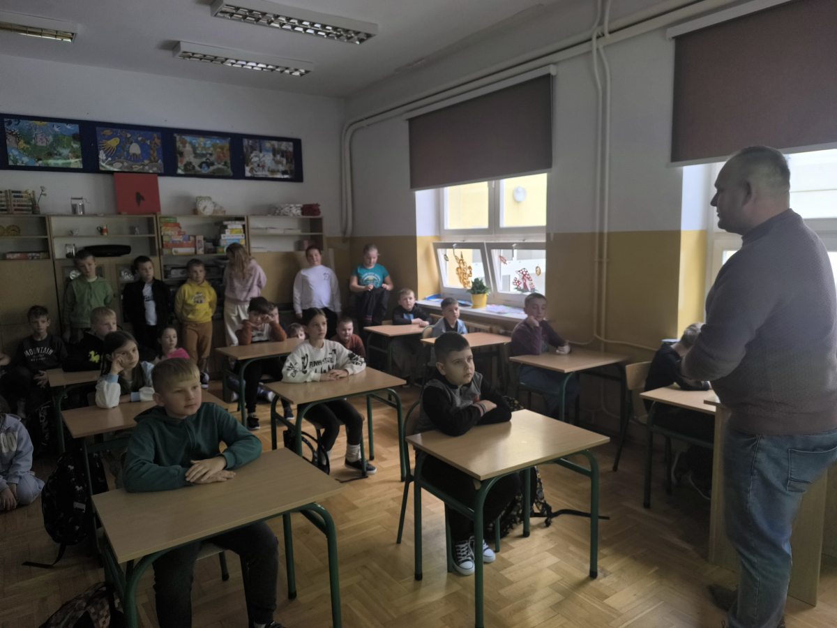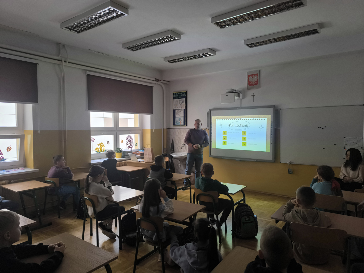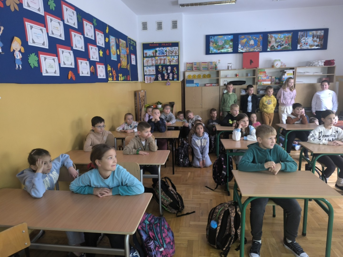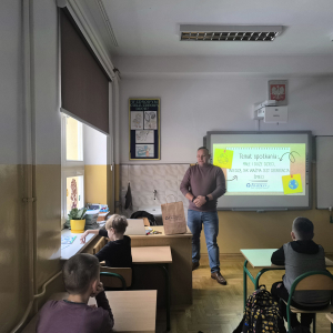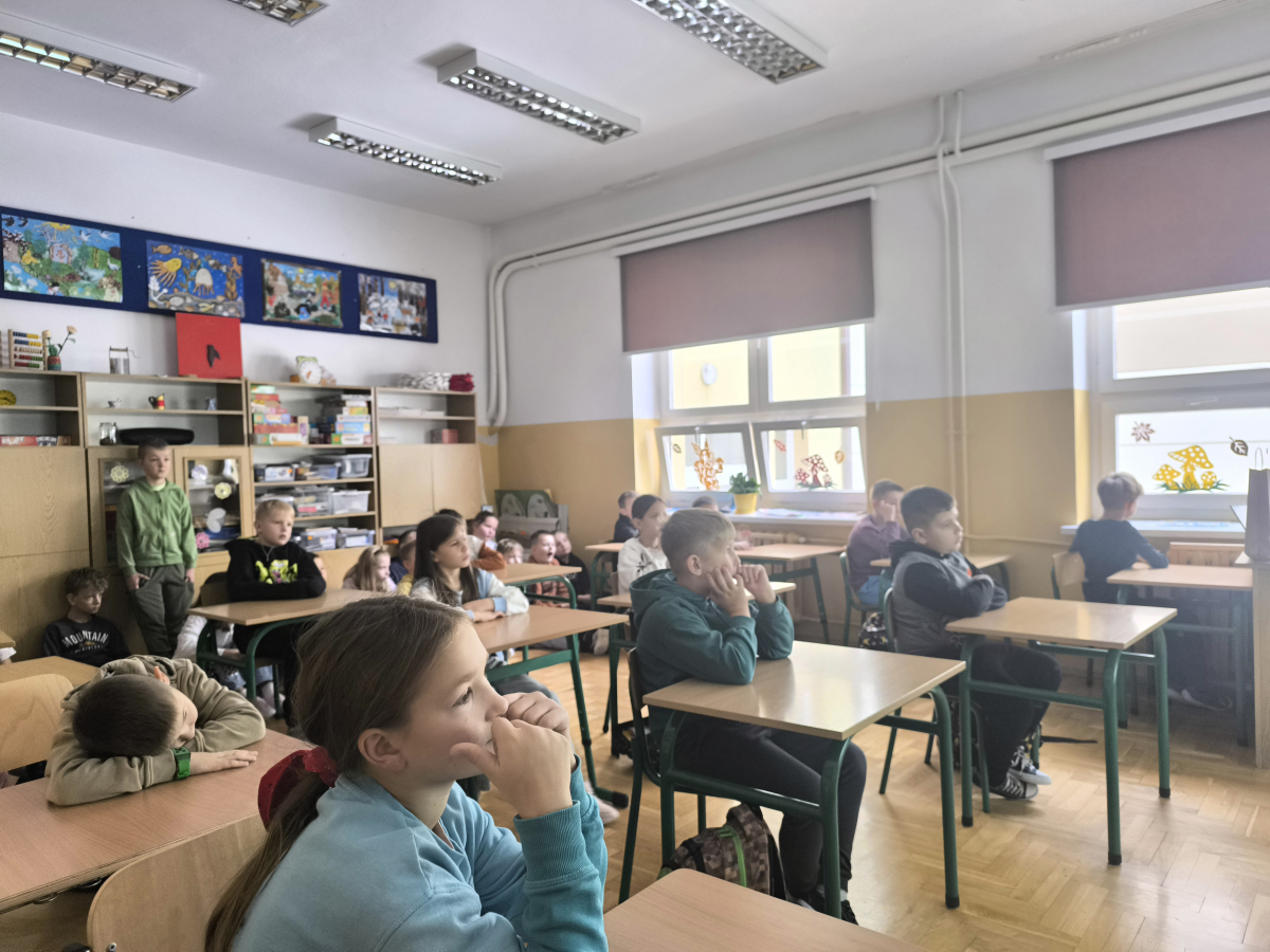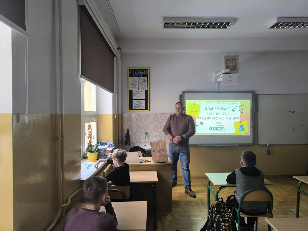 24 listopada 2025 roku uczniowie klas I–III uczestniczyli w ekologicznej prelekcji poświęconej zasadom prawidłowej segregacji odpadów. Pracownik firmy „Traszkan” w interesujący i przystępny sposób wyjaśnił dzieciom, na czym polega recykling oraz dlaczego odpowiednie sortowanie śmieci ma tak duże znaczenie. Uczniowie poznali również najczęściej popełniane błędy związane z segregacją. Spotkanie było cenną lekcją , która uświadomiła uczniom , jak ważna jest troska o środowisko naturalne i odpowiedzialność za pozostawiane odpady. Na zakończenie zajęć każdy uczeń otrzymał drobny upominek.