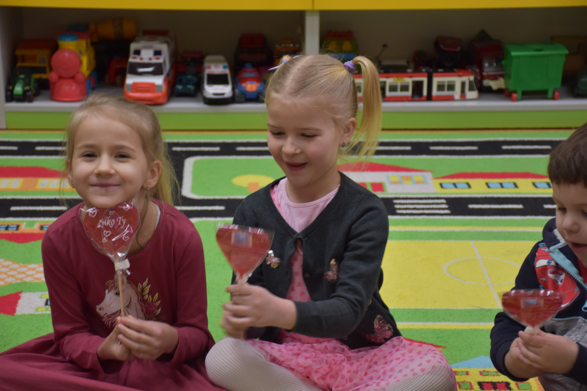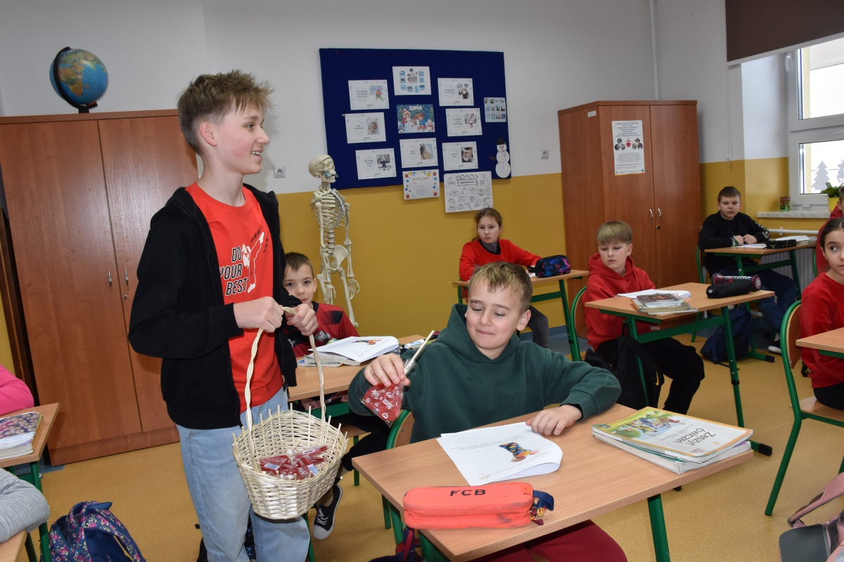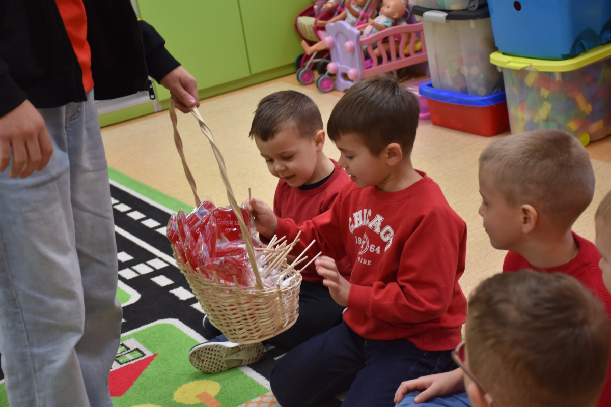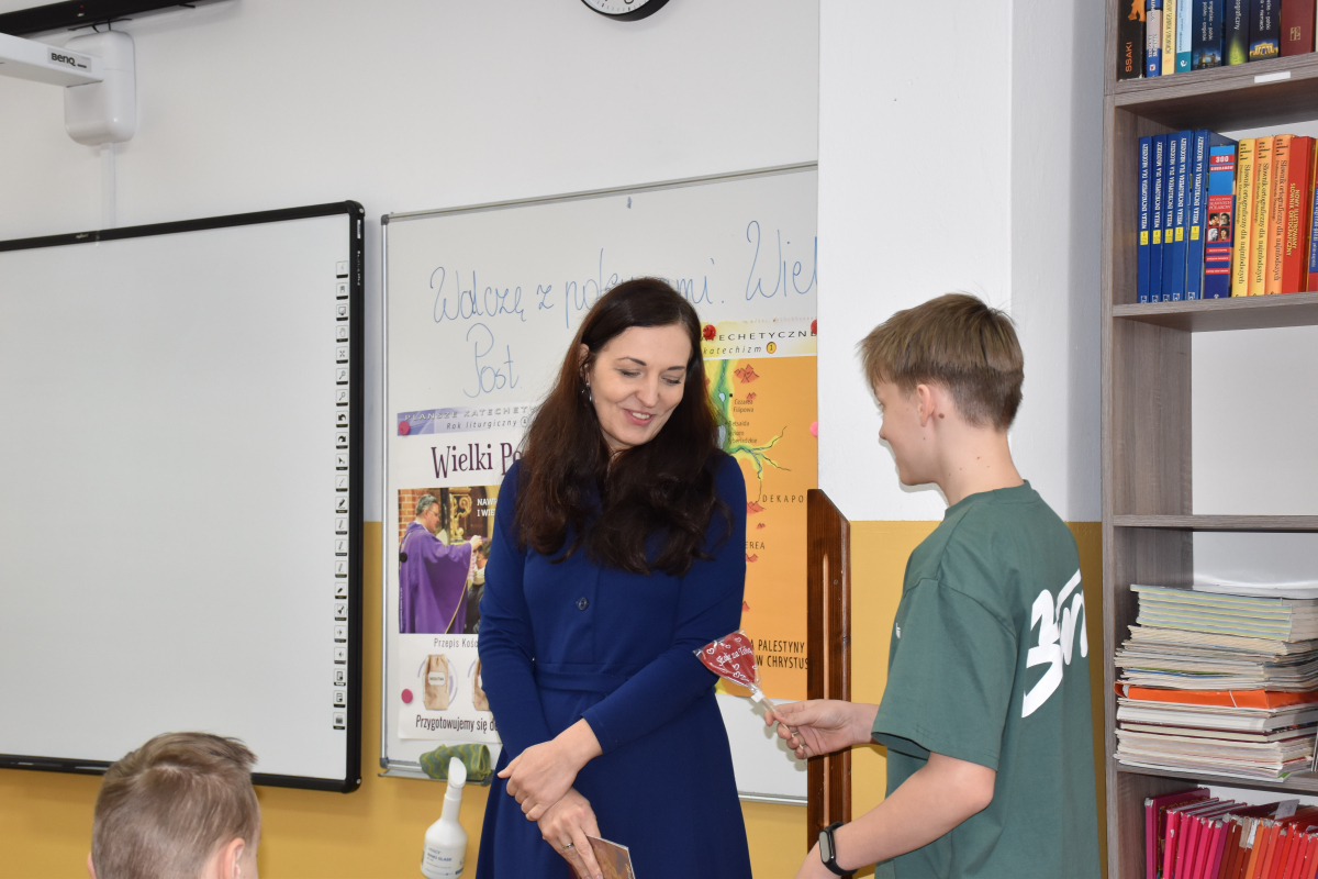 Dodatkową niespodzianką były lizaki w kształcie serca, które rozdano wszystkim uczniom i pracownikom szkoły. Ten drobny gest wywołał wiele radości i podkreślił wyjątkowy charakter dni.