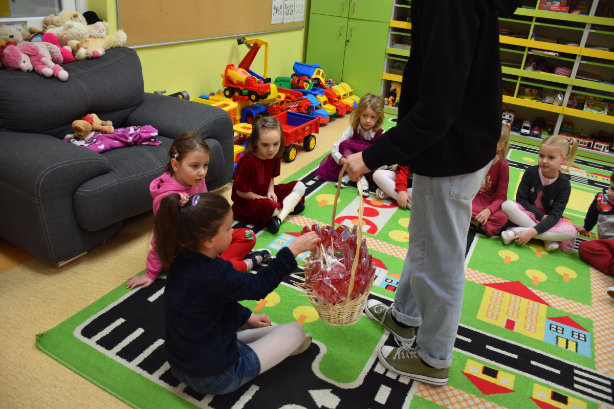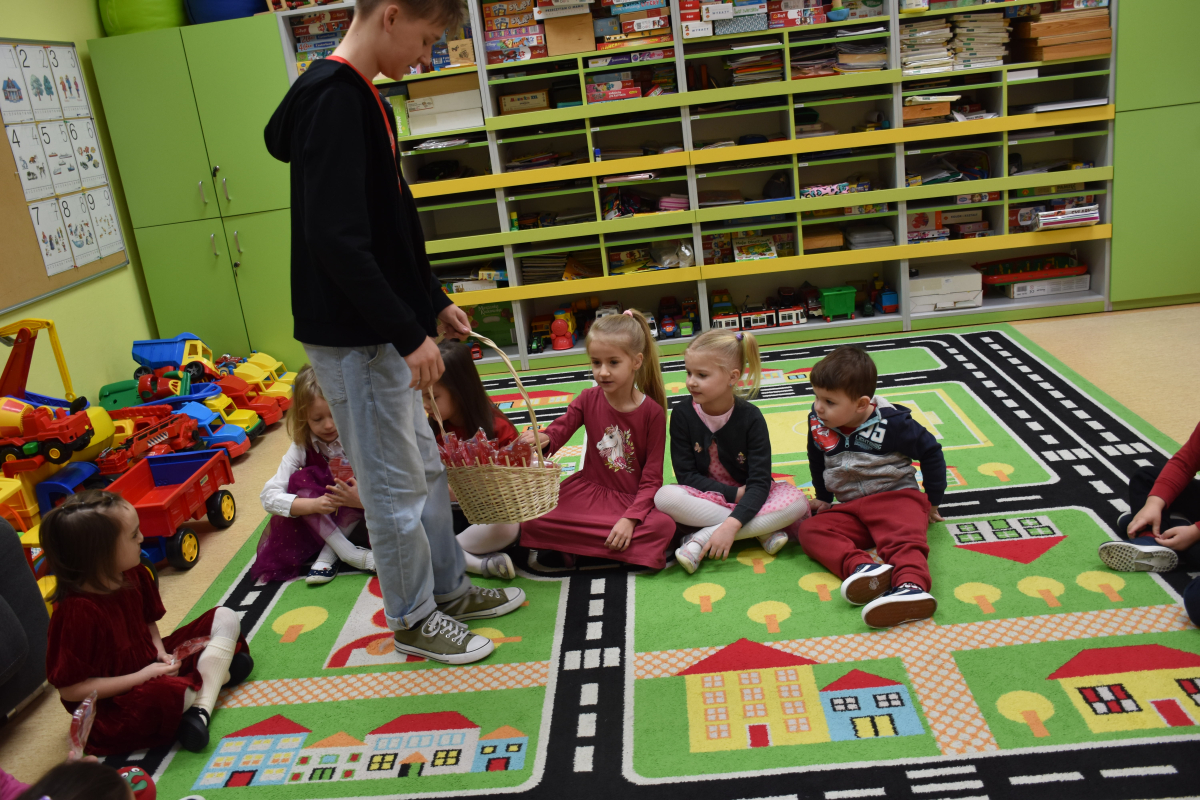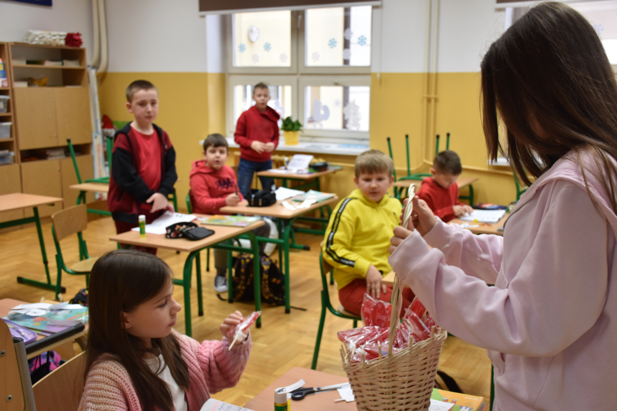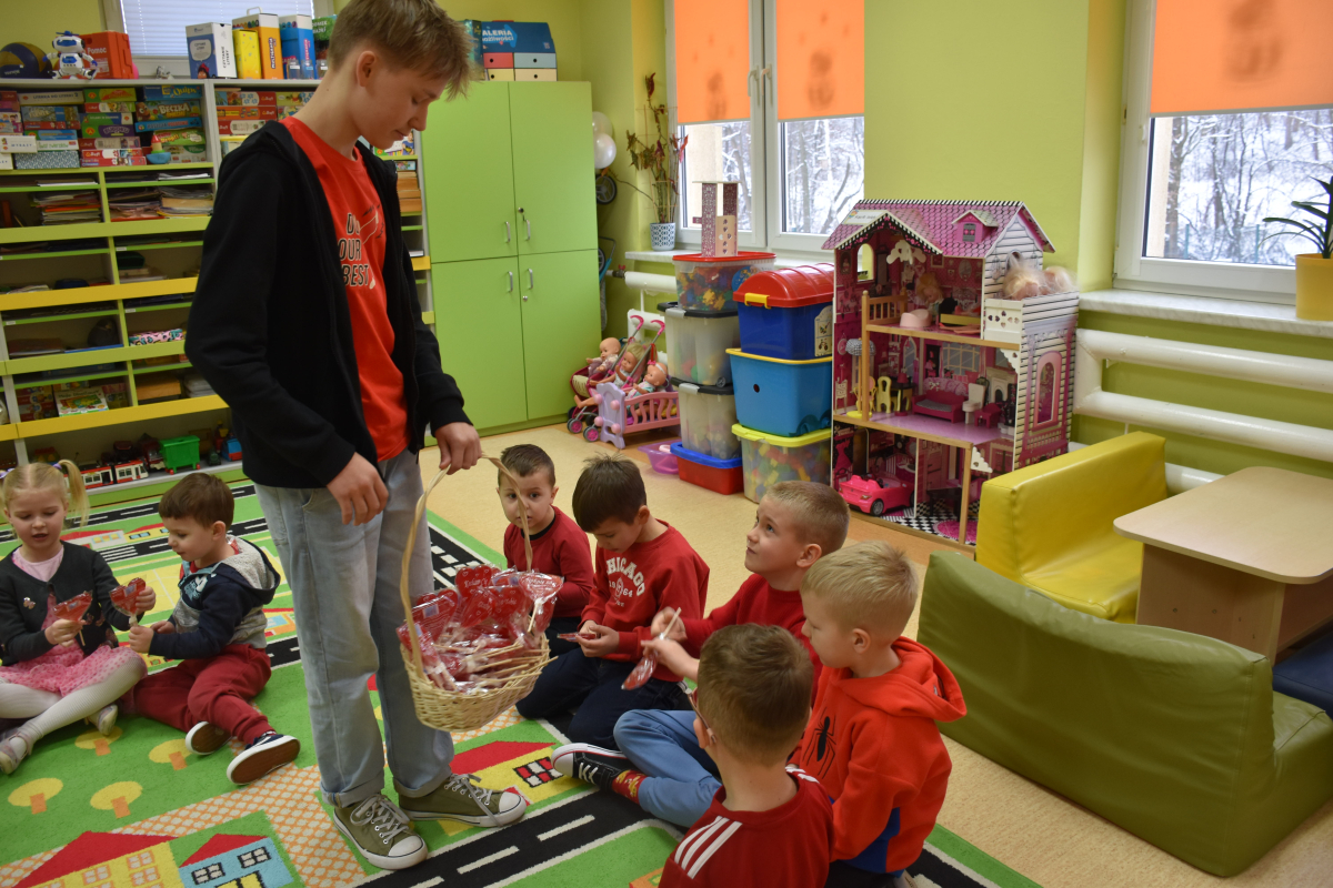 Dodatkową niespodzianką były lizaki w kształcie serca, które rozdano wszystkim uczniom i pracownikom szkoły. Ten drobny gest wywołał wiele radości i podkreślił wyjątkowy charakter dni.
