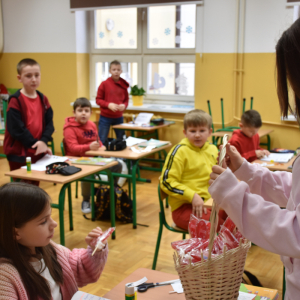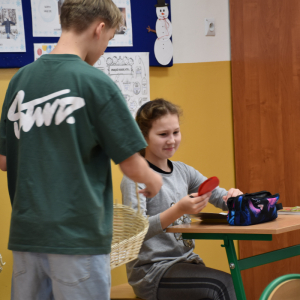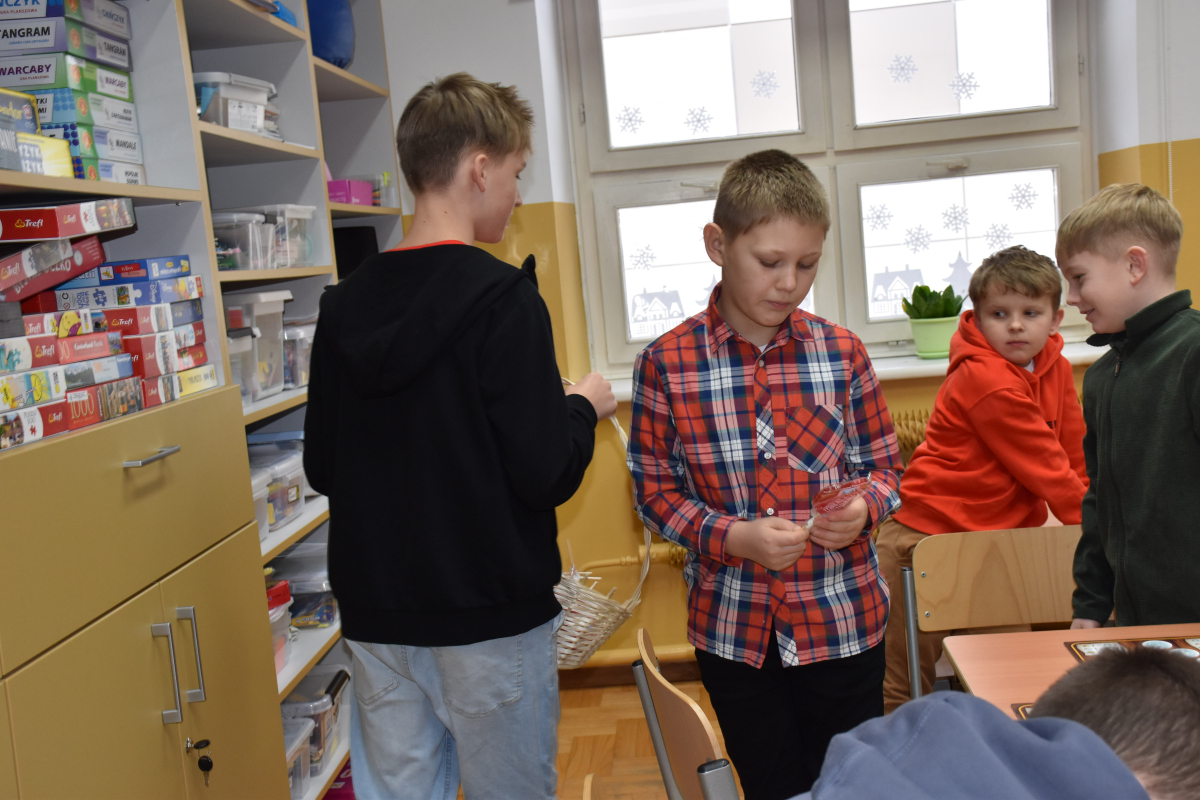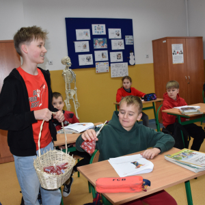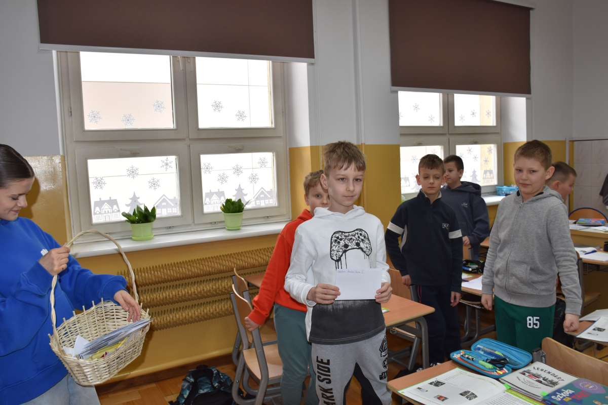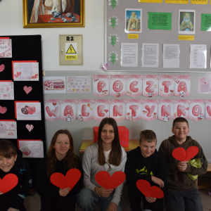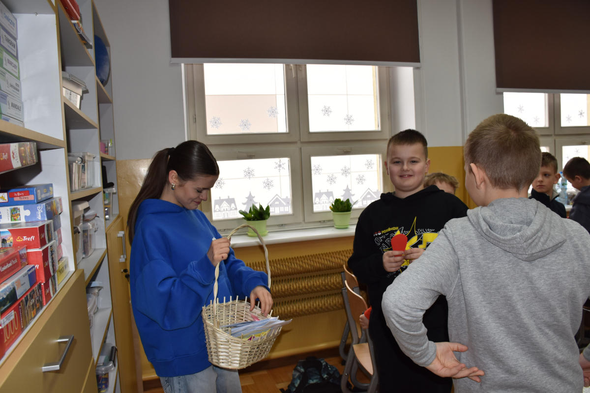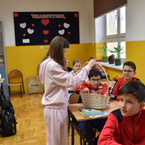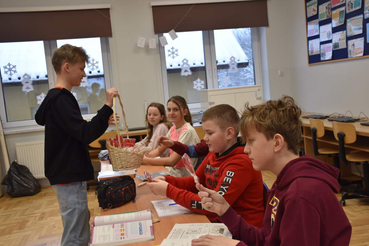 Ogromnym zainteresowaniem cieszyła się poczta walentynkowa. Uczniowie z zaangażowaniem przygotowali kartki dla koleżanek, kolegów oraz nauczycieli, a przedstawiciele Samorządu zadbali o ich sprawne dostarczenie do adresatów. Nie zabrakło miłych słów, uśmiechów i pozytywnych emocji.