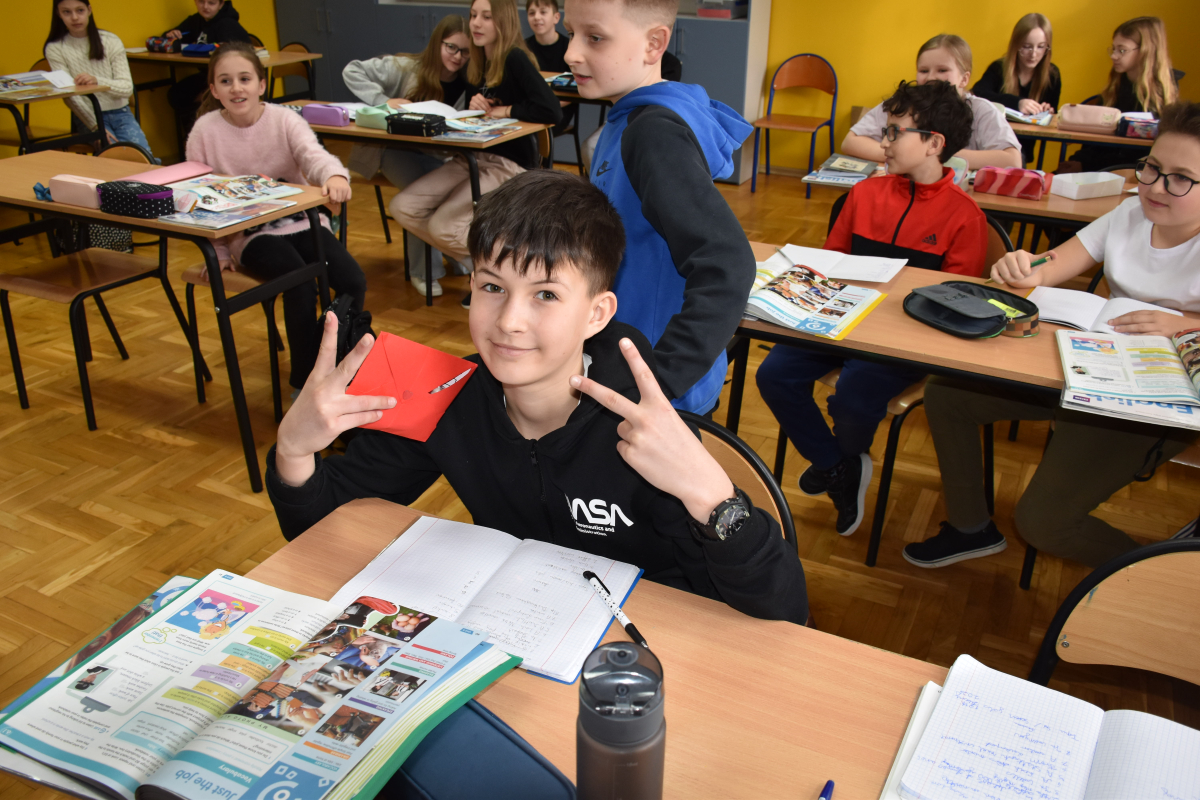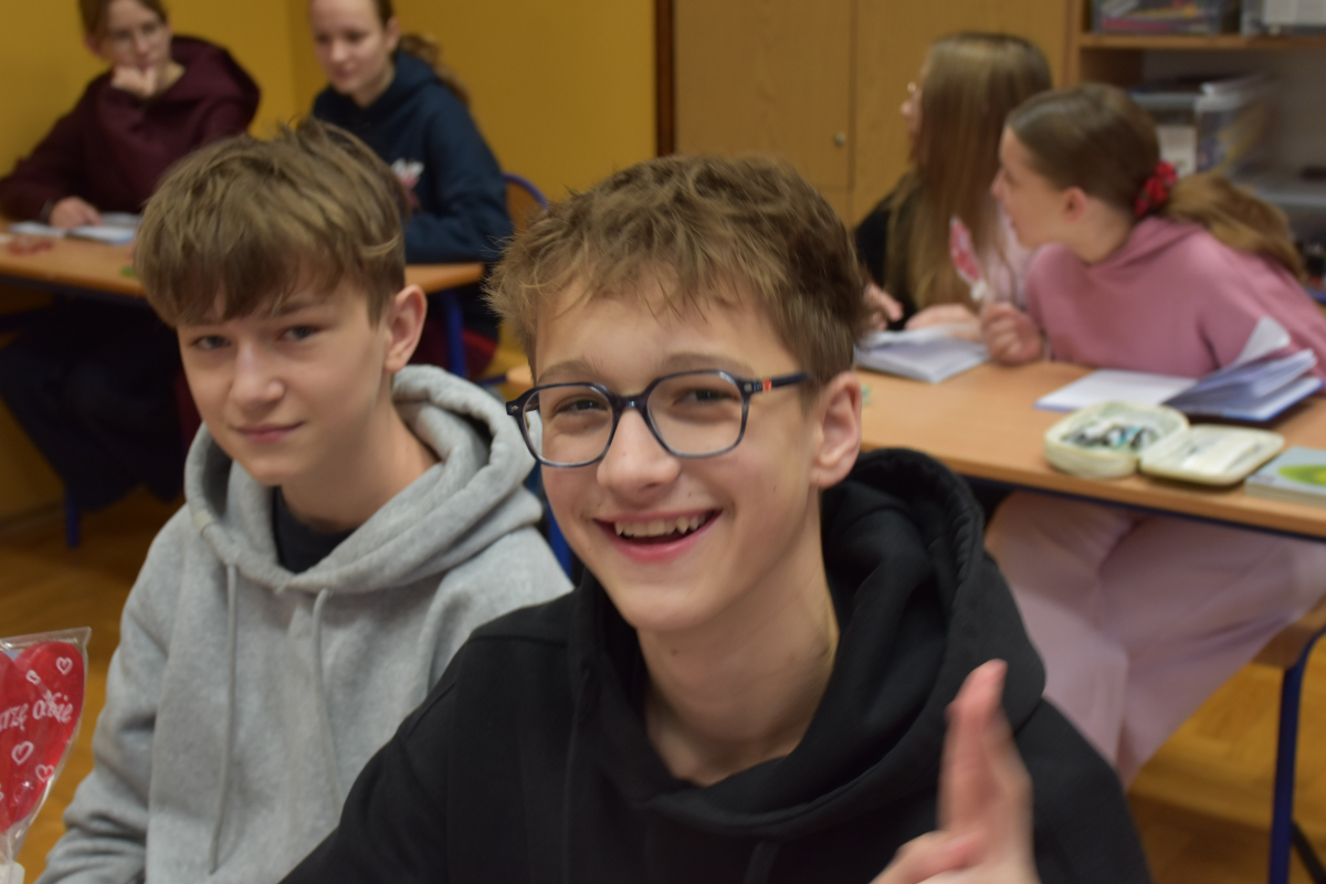 W naszej szkole zrobiło się wyjątkowo ciepło i radośnie za sprawą Walentynek przygotowanych przez Samorząd Uczniowski. Tego dnia obowiązywał czerwono-różowy strój, dzięki temu korytarze wypełniły się kolorami miłości i przyjaźni.