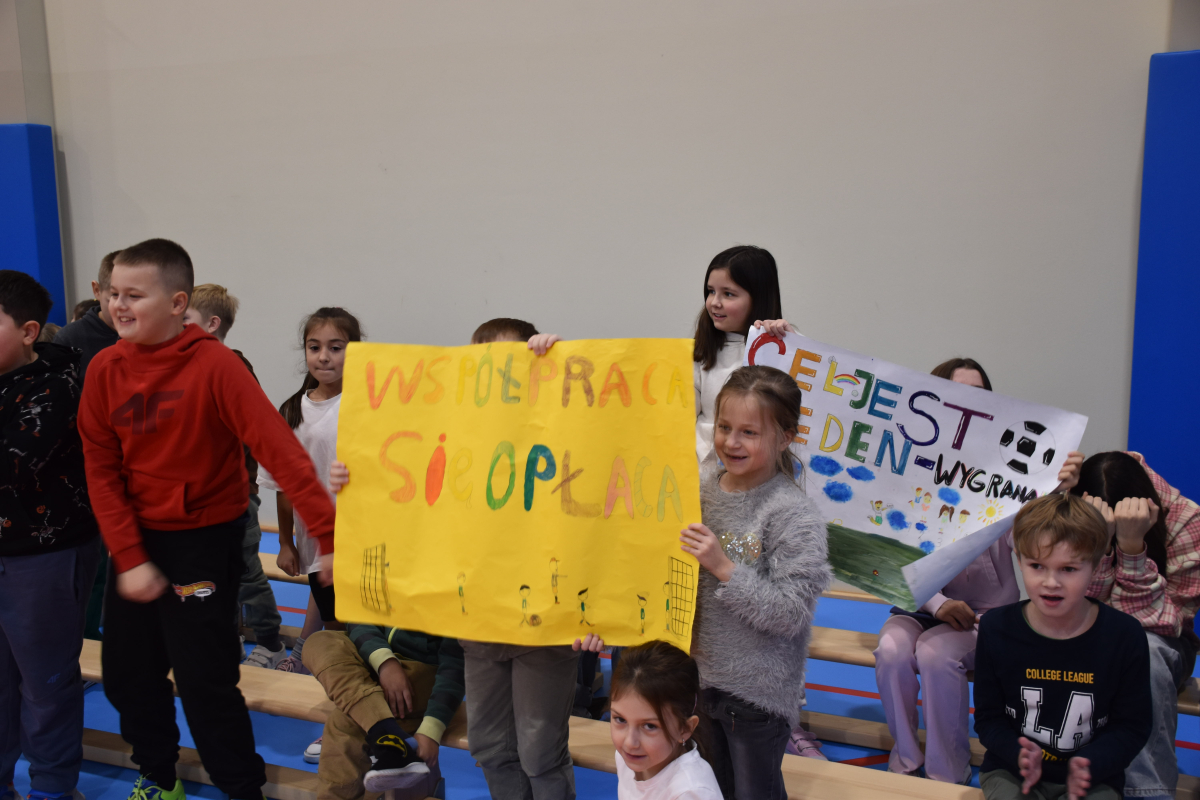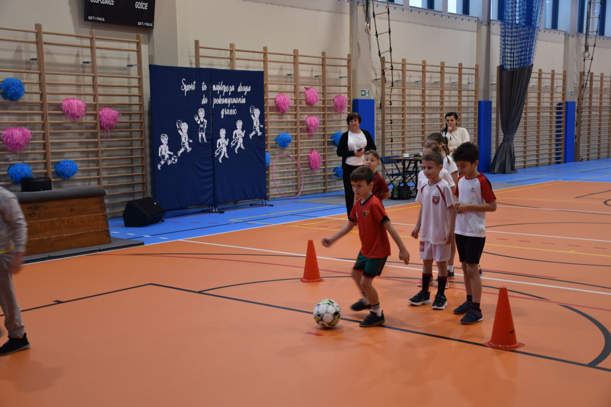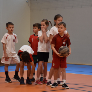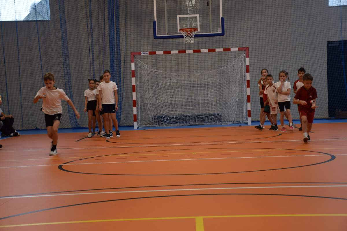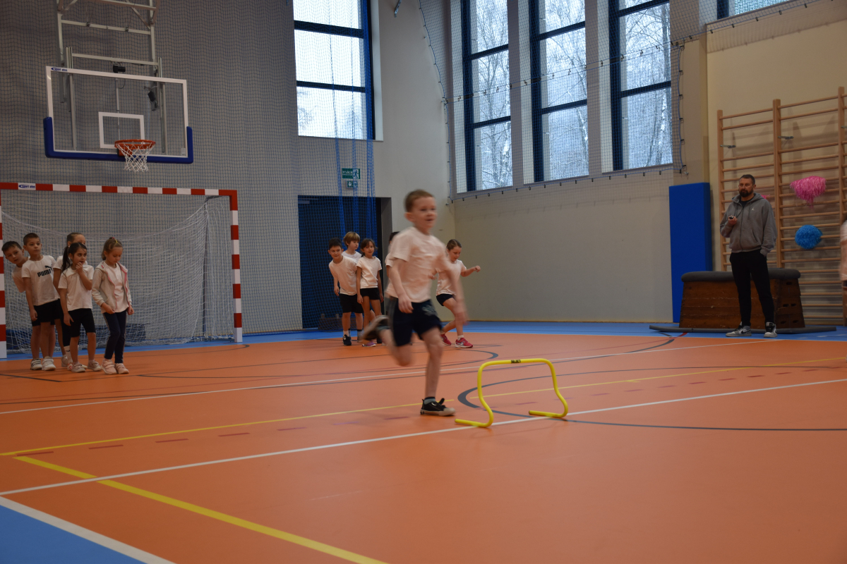 26 listopada 2025r. odbył się emocjonujący turniej sportowy dla uczniów klas I-III, w którym młodzi sportowcy mieli okazję wykazać się sprawnością, współpracą oraz świetnym duchem rywalizacji. Do zmagań stanęły cztery drużyny, które z ogromnym zaangażowaniem uczestniczyły w przygotowanych konkurencjach w ramach sztafet wahadłowych. Konkurencje kształtowały celność, szybkość, precyzję ruchów oraz współpracę w zespole. Uczniowie z entuzjazmem pokonywali kolejne etapy, pokazując nie tylko sprawność fizyczną, ale przede wszystkim umiejętności współdziałania i wspierania kolegów z drużyny. Wydarzenie przebiegło w radosnej atmosferze, pełnej dopingu i pozytywnych emocji. Gratulujemy wszystkim uczestnikom zaangażowania i sportowej postawy. Każdy zespół otrzymał pamiątkowe dyplomy oraz piłki.