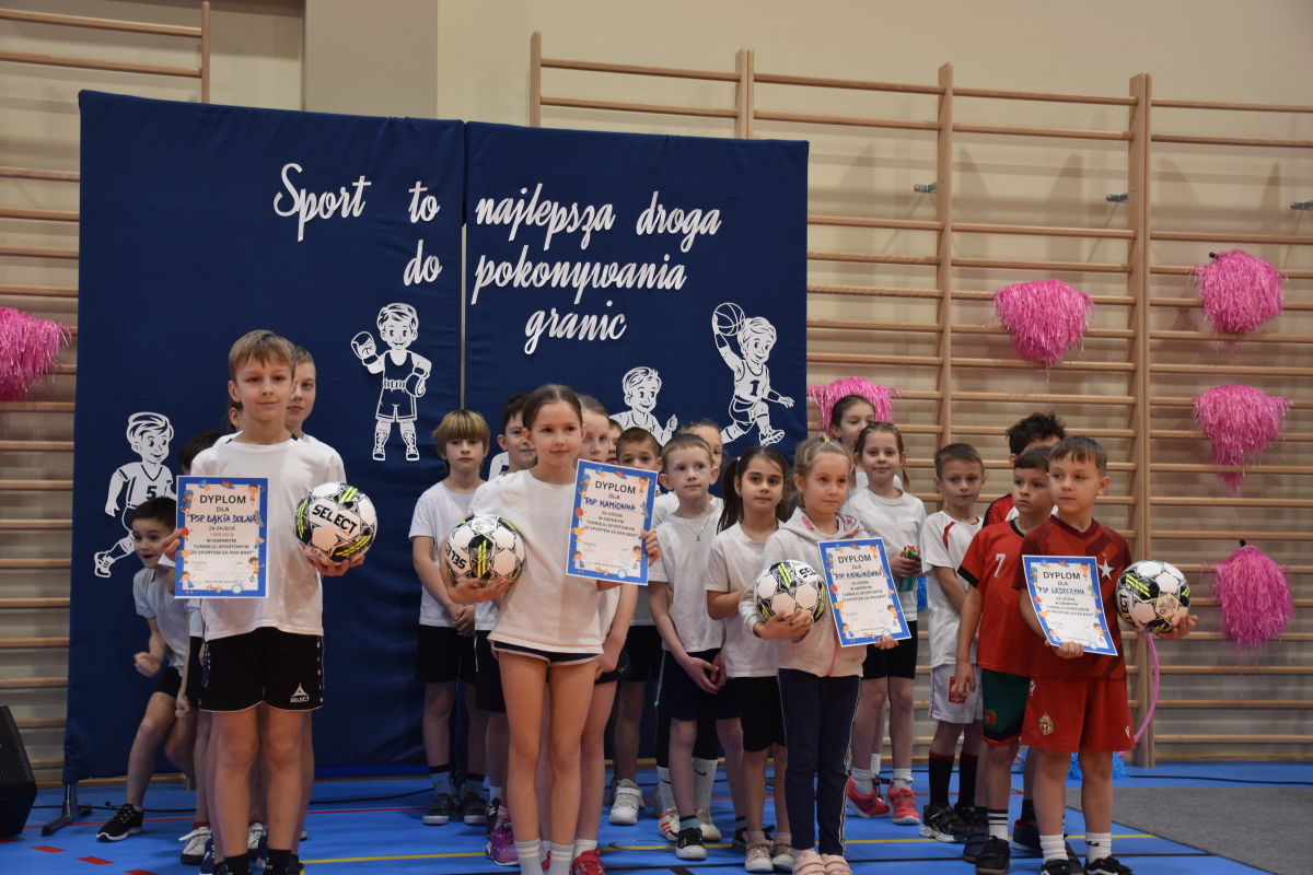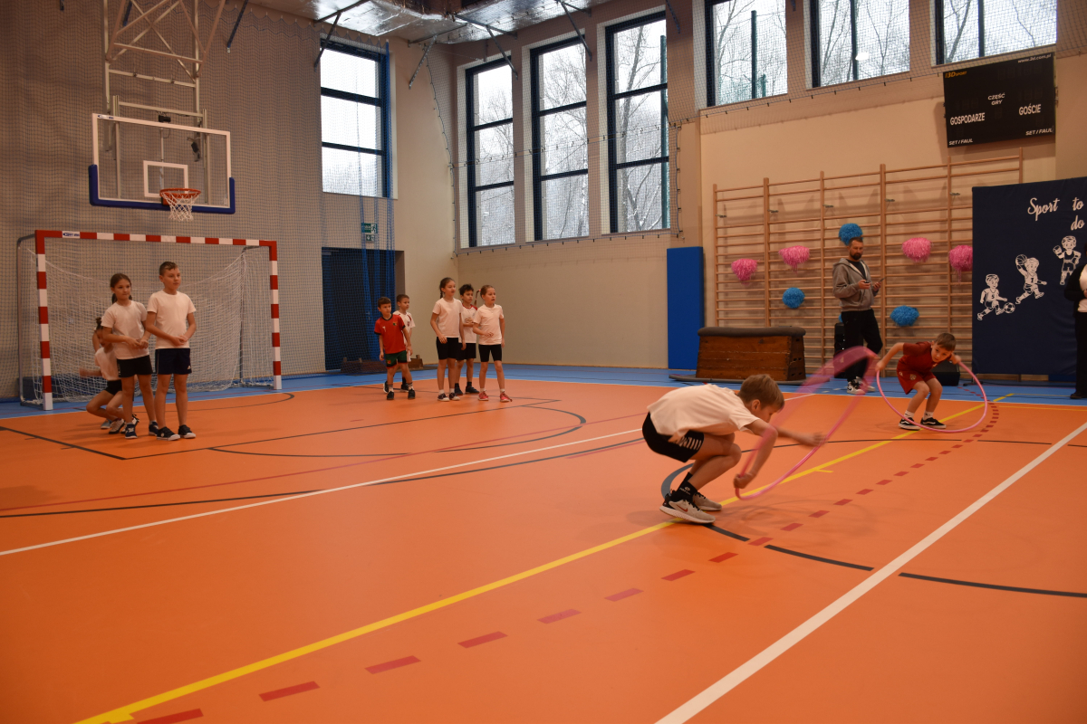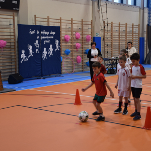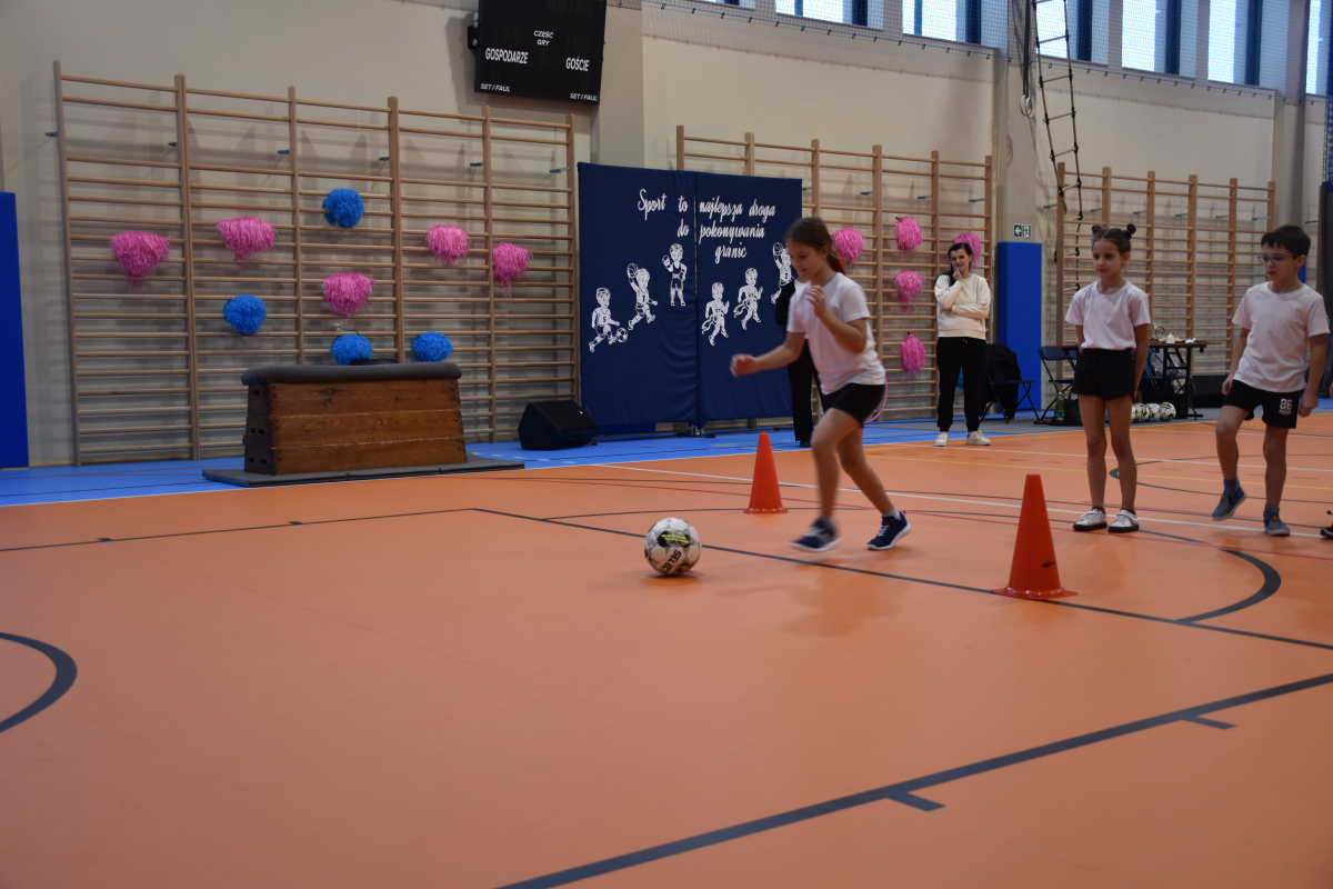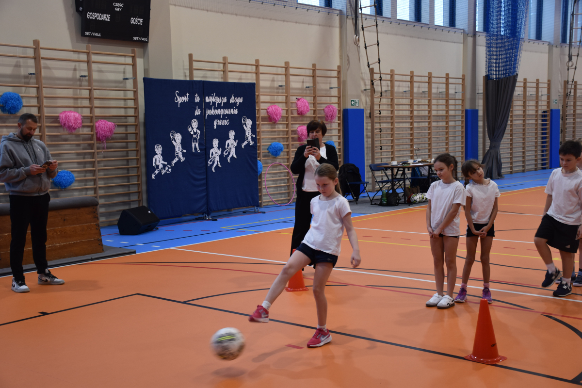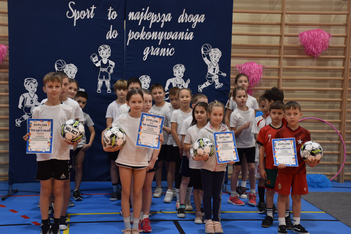 26 listopada 2025r. odbył się emocjonujący turniej sportowy dla uczniów klas I-III, w którym młodzi sportowcy mieli okazję wykazać się sprawnością, współpracą oraz świetnym duchem rywalizacji. Do zmagań stanęły cztery drużyny, które z ogromnym zaangażowaniem uczestniczyły w przygotowanych konkurencjach w ramach sztafet wahadłowych. Konkurencje kształtowały celność, szybkość, precyzję ruchów oraz współpracę w zespole. Uczniowie z entuzjazmem pokonywali kolejne etapy, pokazując nie tylko sprawność fizyczną, ale przede wszystkim umiejętności współdziałania i wspierania kolegów z drużyny. Wydarzenie przebiegło w radosnej atmosferze, pełnej dopingu i pozytywnych emocji. Gratulujemy wszystkim uczestnikom zaangażowania i sportowej postawy. Każdy zespół otrzymał pamiątkowe dyplomy oraz piłki.