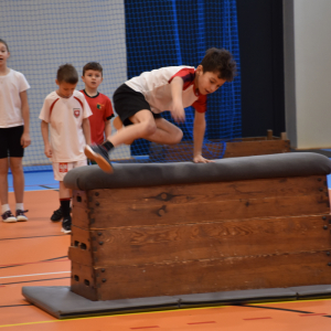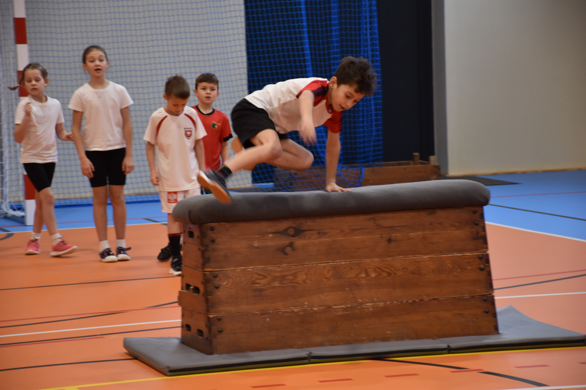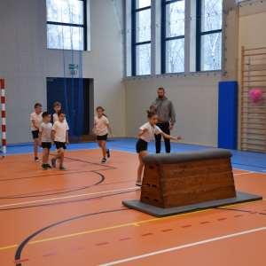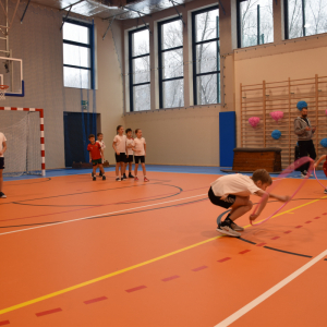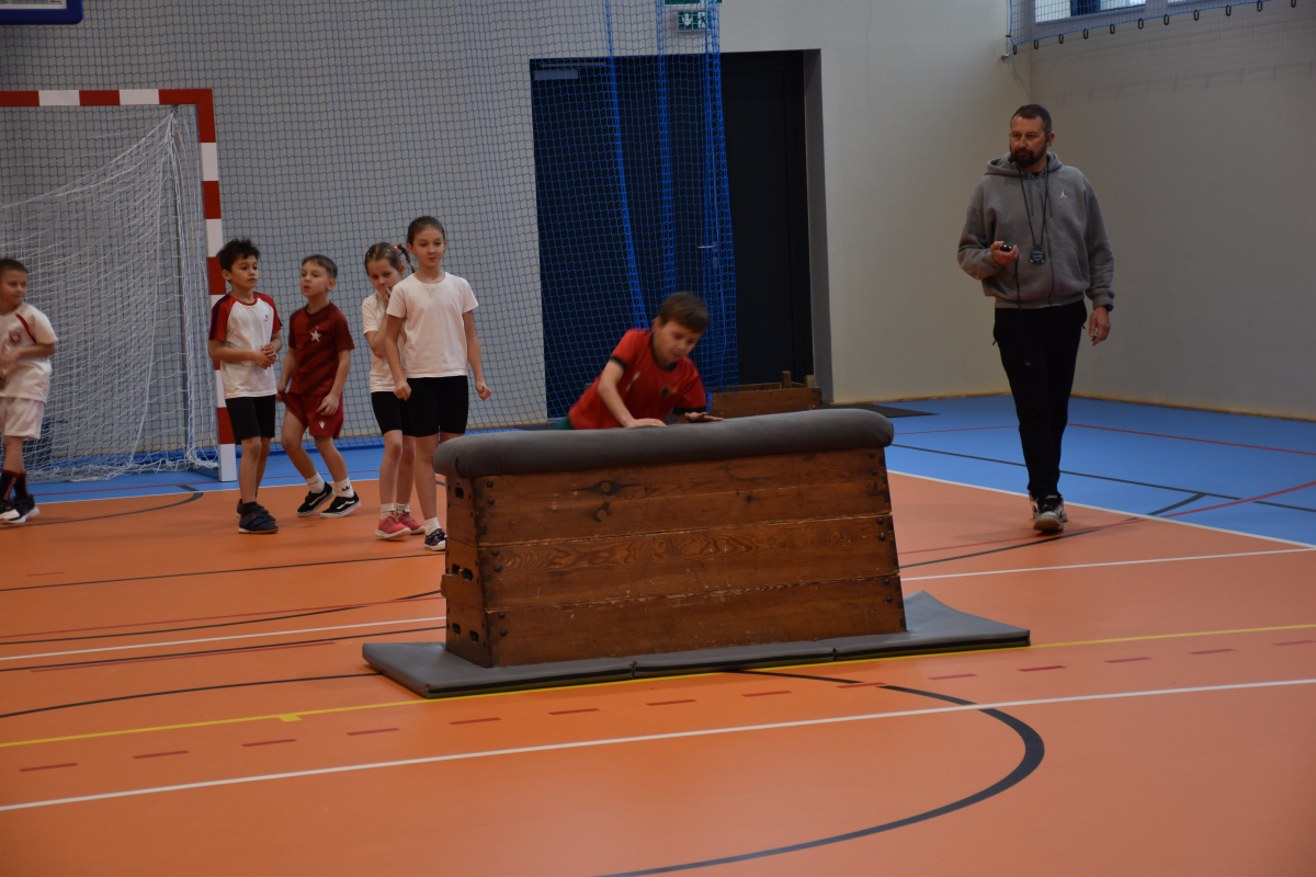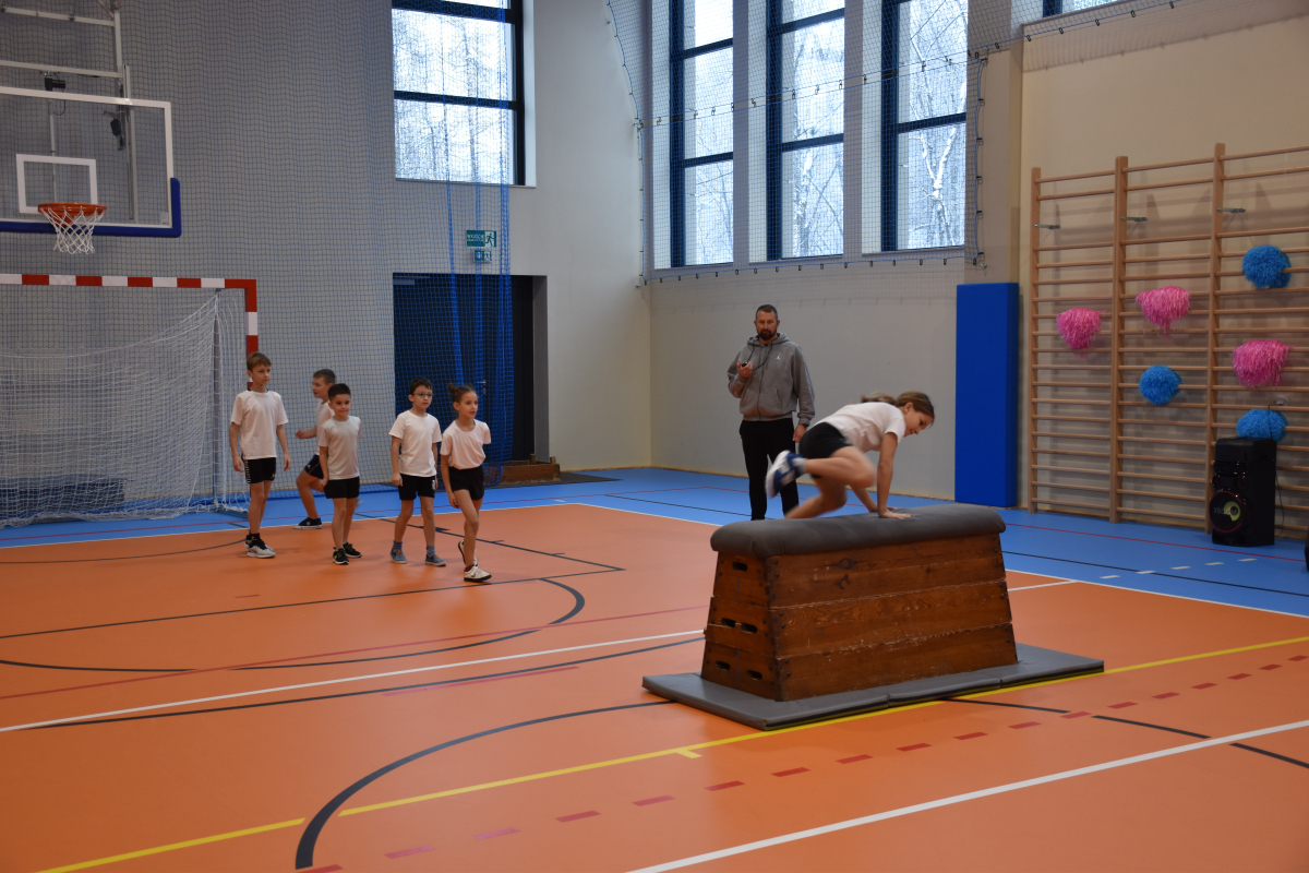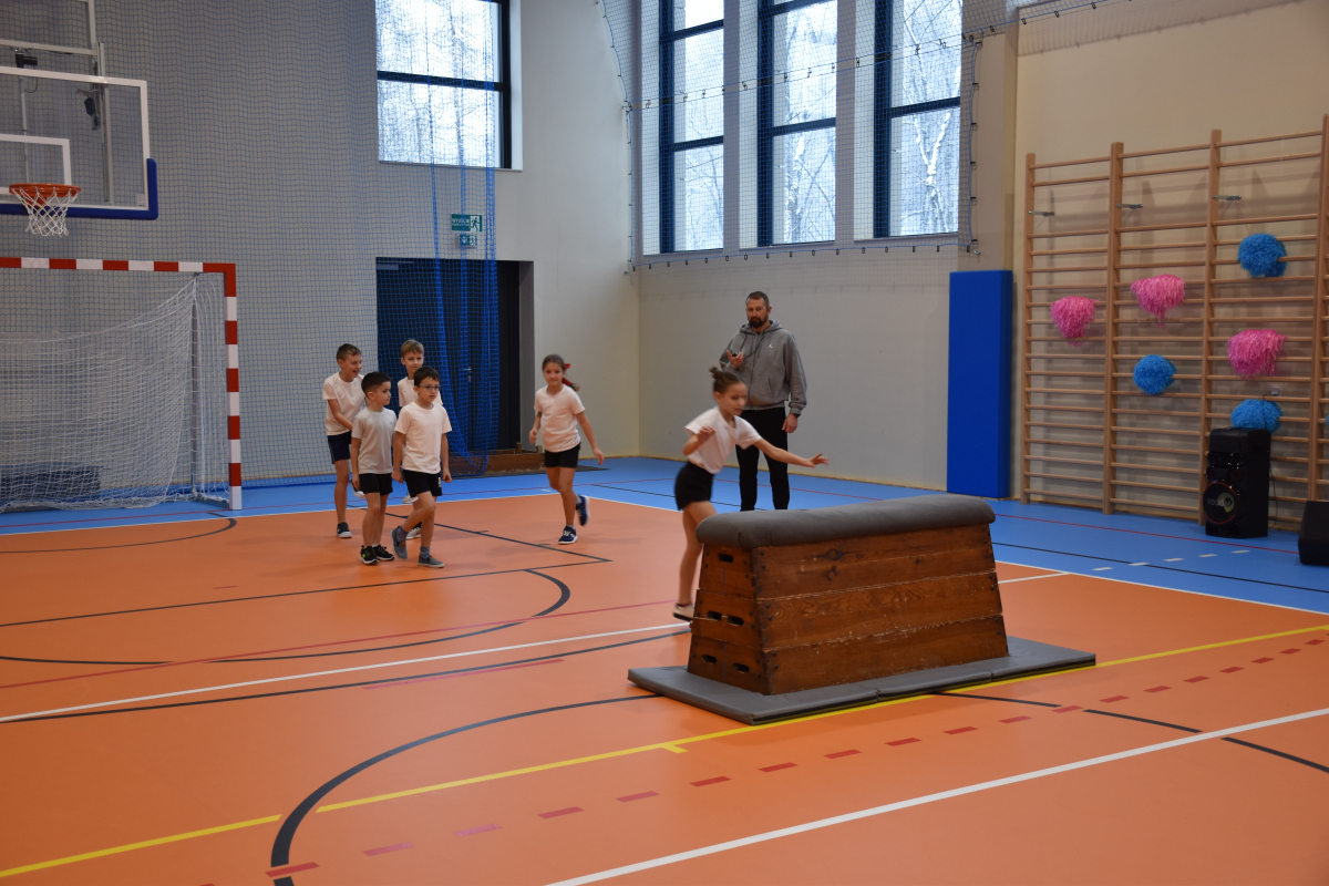 26 listopada 2025r. odbył się emocjonujący turniej sportowy dla uczniów klas I-III, w którym młodzi sportowcy mieli okazję wykazać się sprawnością, współpracą oraz świetnym duchem rywalizacji. Do zmagań stanęły cztery drużyny, które z ogromnym zaangażowaniem uczestniczyły w przygotowanych konkurencjach w ramach sztafet wahadłowych. Konkurencje kształtowały celność, szybkość, precyzję ruchów oraz współpracę w zespole. Uczniowie z entuzjazmem pokonywali kolejne etapy, pokazując nie tylko sprawność fizyczną, ale przede wszystkim umiejętności współdziałania i wspierania kolegów z drużyny. Wydarzenie przebiegło w radosnej atmosferze, pełnej dopingu i pozytywnych emocji. Gratulujemy wszystkim uczestnikom zaangażowania i sportowej postawy. Każdy zespół otrzymał pamiątkowe dyplomy oraz piłki.